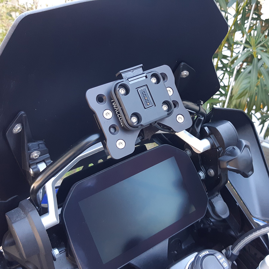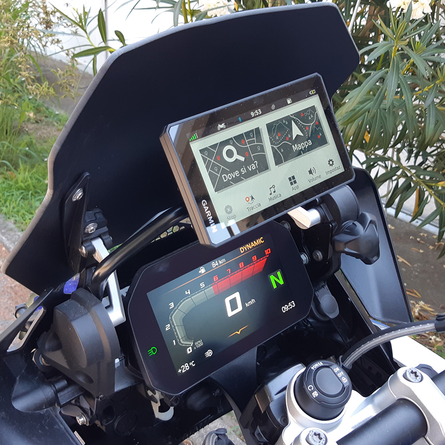 Equipped with an offset plane relative to the mounting axis of +/- 1 cm for finding the ideal position, it is also designed for mounting on 12 mm diameter tubes for original Garmin supports: Zumo XT, GPSMAP Montana (both horizontal and vertical positions), and 276CX, as well as for QuadLock bases with two and four screws (FLAT RECTANGLE BASE 2/4 HOLE).
