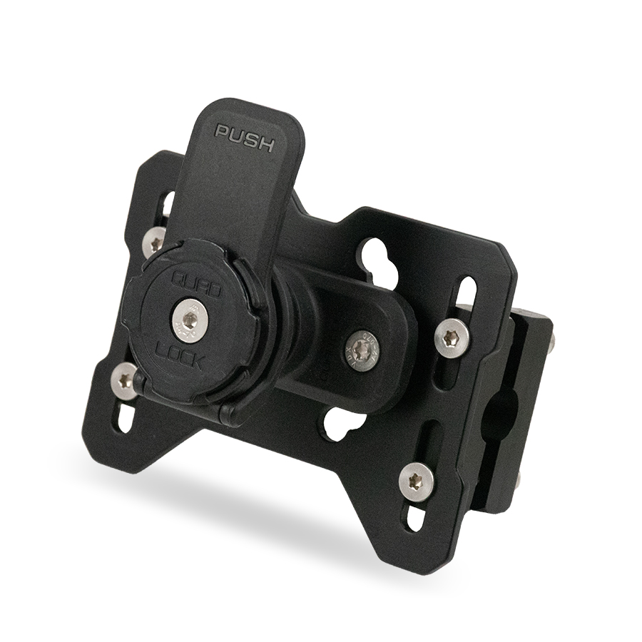 This practical mounting base designed for vibration reduction allows perfect and secure installation of GPS, rugged phones, and regular phones, thanks to the QuadLock mounting system.