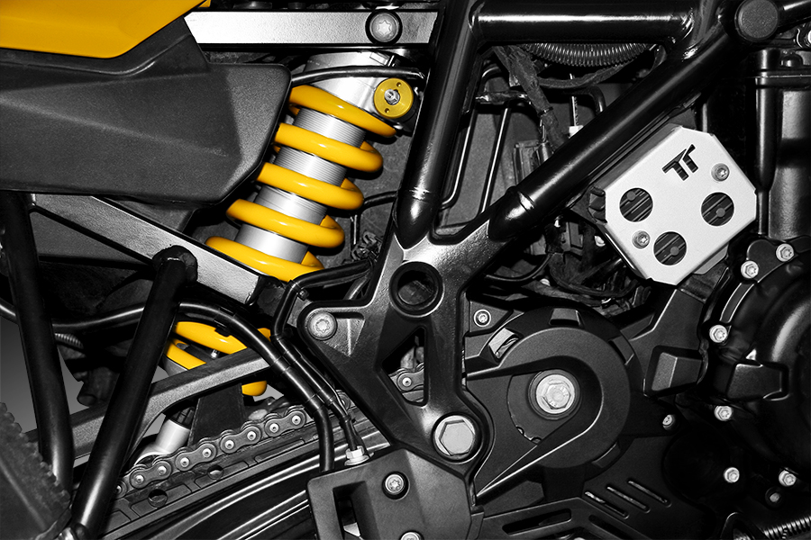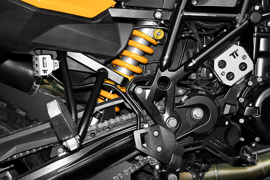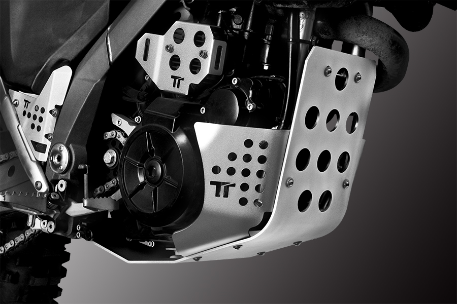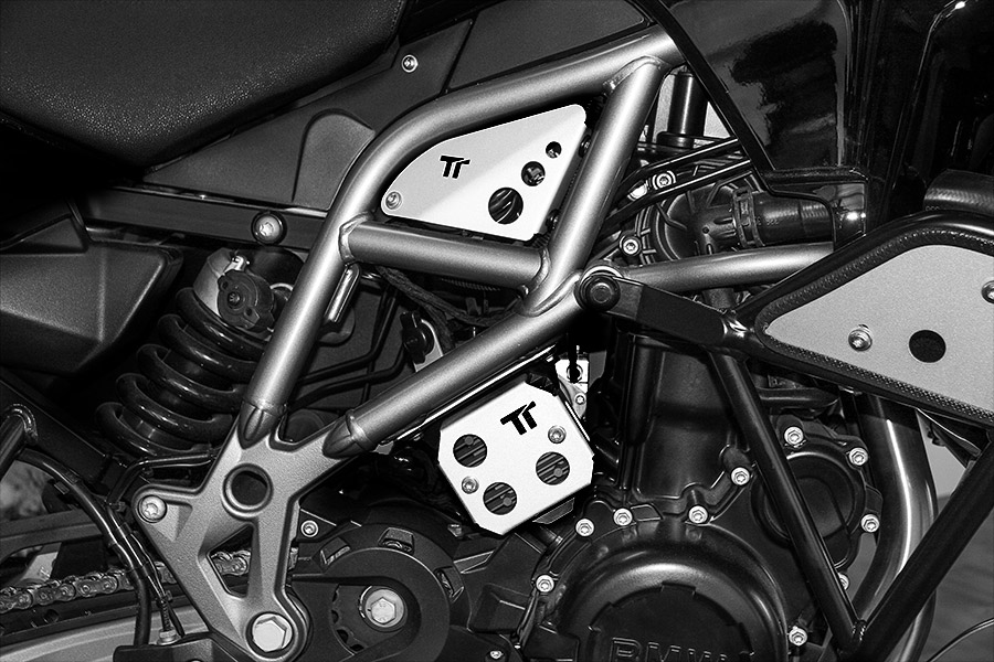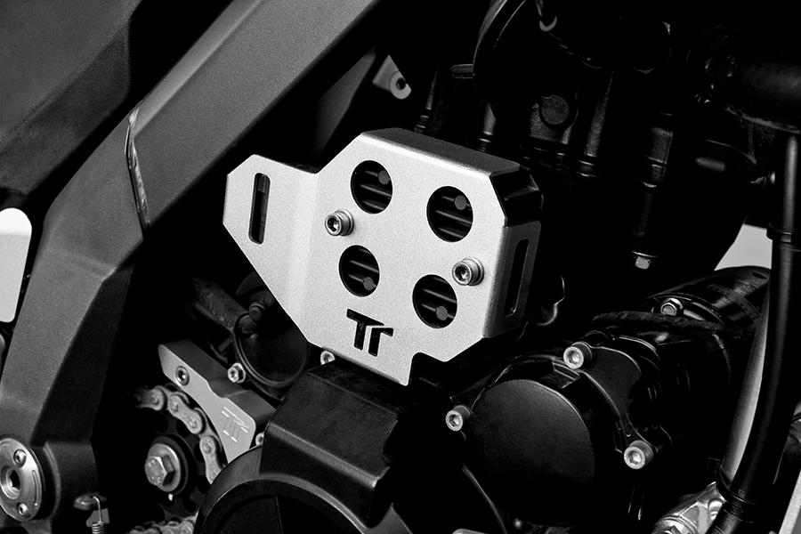 Our manufactured alternator regulator protection is built with premium quality materials. In addition to providing extensive protection for the alternator regulator without hindering its cooling, it also offers excellent protection for the rear brake fluid reservoir. It comes complete with stainless steel screws with self-locking coating.
