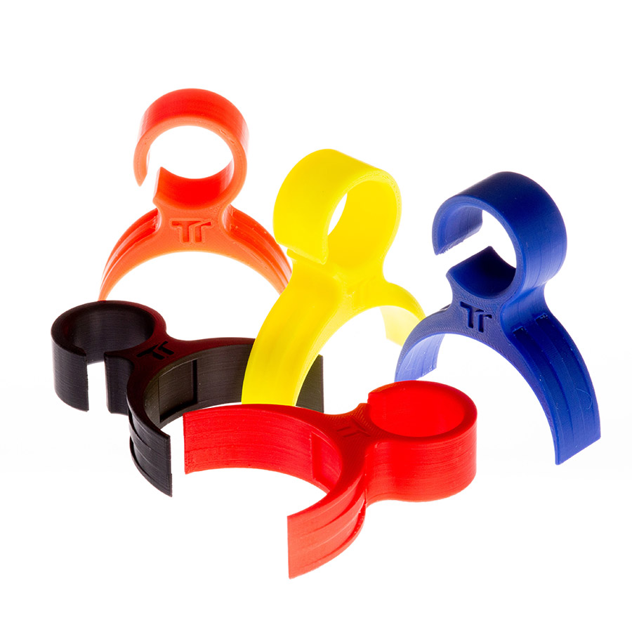 The 3D printed nylon guide is a very useful accessory for directing the brake hose/ICO sensor whip assembly and thus avoiding any contact during its travel. Made of black nylon, it attaches directly to the fork leg at the desired height with strong double-sided tape and zip ties (included). This particular type of mounting also allows you to install two at different heights (close or far apart) to better direct the hose/cable travel.