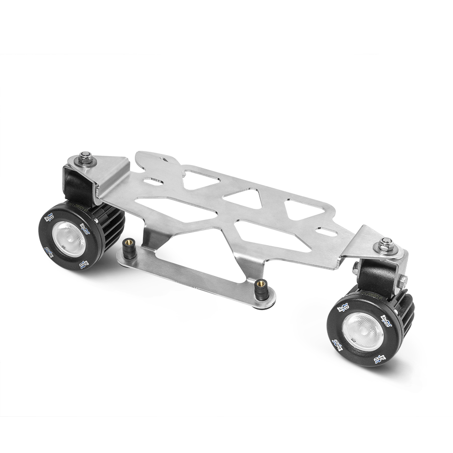 With the complete bracket for mounting LED lights that we designed and produced, you can create a solid mounting base below the front headlight for positioning LED lights with diameters from 50 to 70 mm.