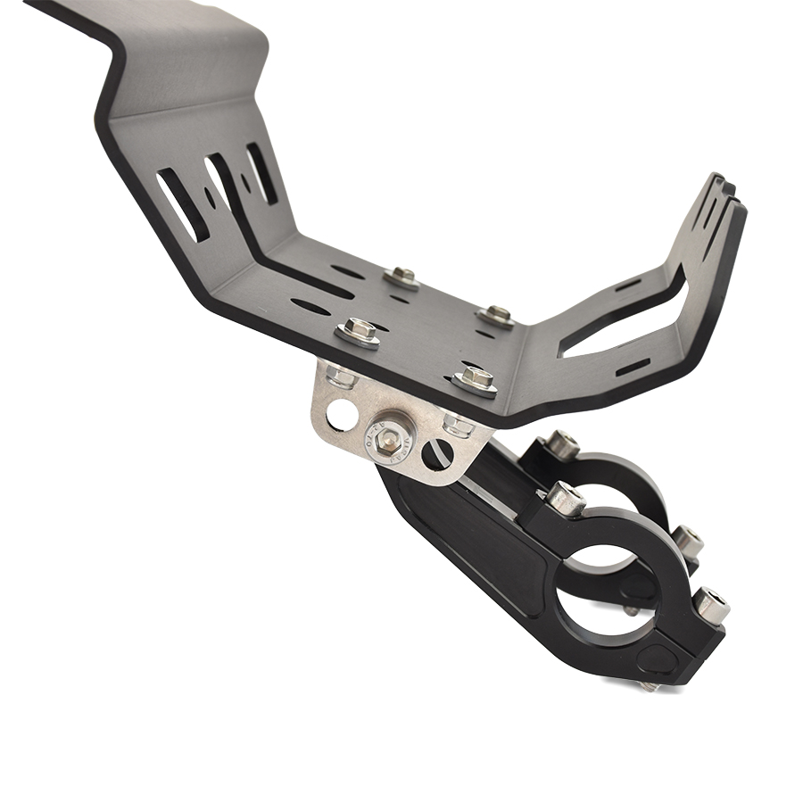 They are made of high-strength Ergal and have been specially designed to minimize weight and, most importantly, to provide the best possible mounting ergonomics, making adjustment and fixing simple and very quick. The two brackets are also variable in width as they can be mounted both inside and outside the risers and are essential when the risers are centrally joined and when you want to mount the Rally instrumentation in combination with the steering damper.
