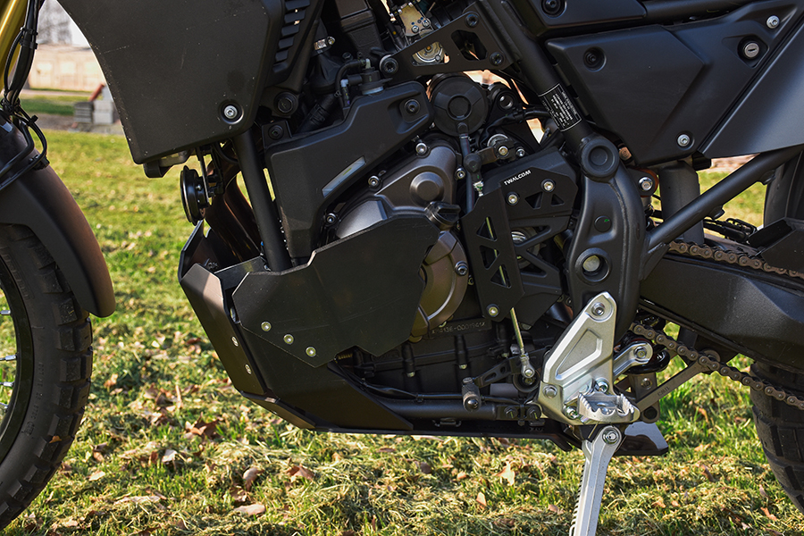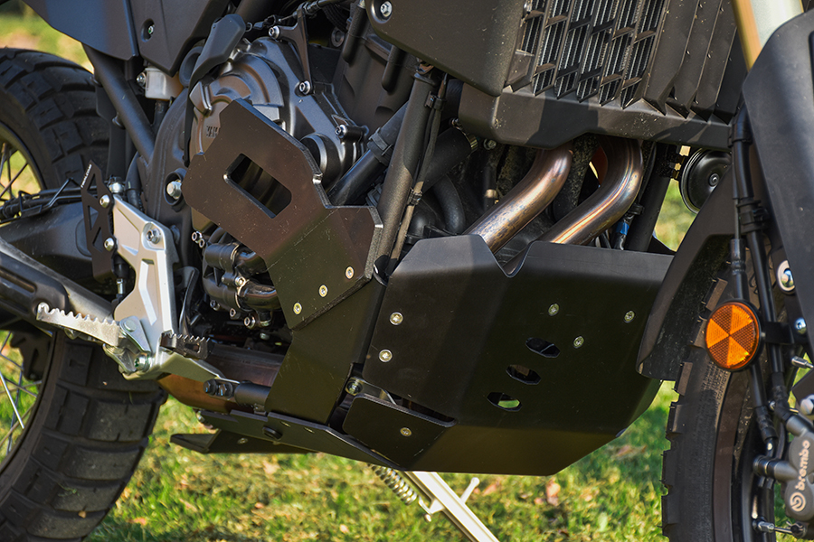 Main structure in 8mm HDPE. mounted directly to the Hard Enduro Engine Guard Plate already prepared for mounting and internally further lined with 1cm rubber foam. Internal support brackets in stainless steel with threaded clips.