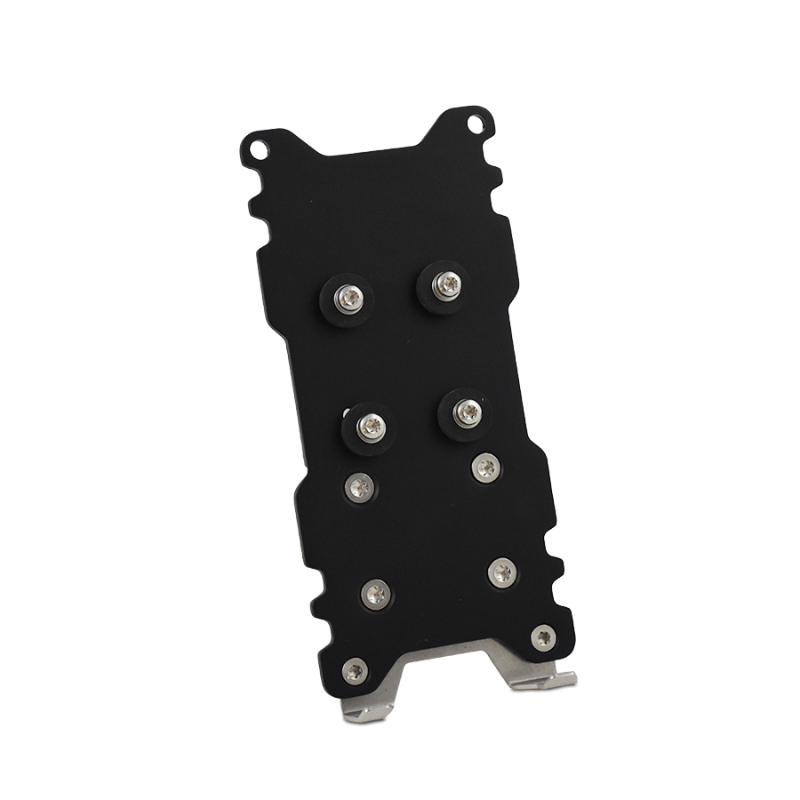 The package includes: 2 Ergal clamps, 3 mm Peraluman mounting base, upper and lower anti-vibration elements, lower containment bracket and stainless steel screws.