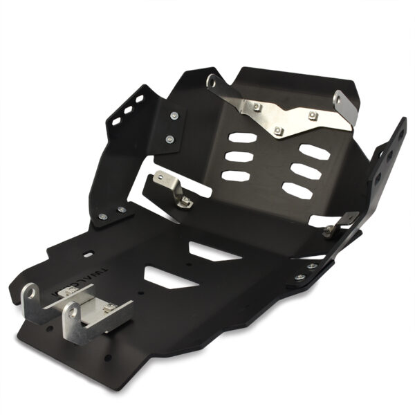 The Hard Enduro Engine Guard Plate is built with top quality materials. Main structure in 5mm Peraluman. fixed to the frame and engine at 8 points to evenly distribute every impact and rubber pad to protect the oil pan. It is complete with robust 3 and 4mm stainless steel brackets. with anti-vibration elastic supports and bolts with self-locking coating. It mounts simply and quickly without any modification to other parts of the bike.