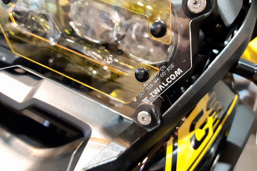 The headlight protection is made with top-quality materials and comes complete with quick-release spacers, rubber anti-vibration supports, and stainless steel screws. Structure: 2 mm steel support protected with high-resistance epoxy-acrylic paints – headlight protection in 4 mm Altuglas approved DOT 626 M4 00 AS6 – The package includes the additional lens in Yellow Fog or Electric Blue color.