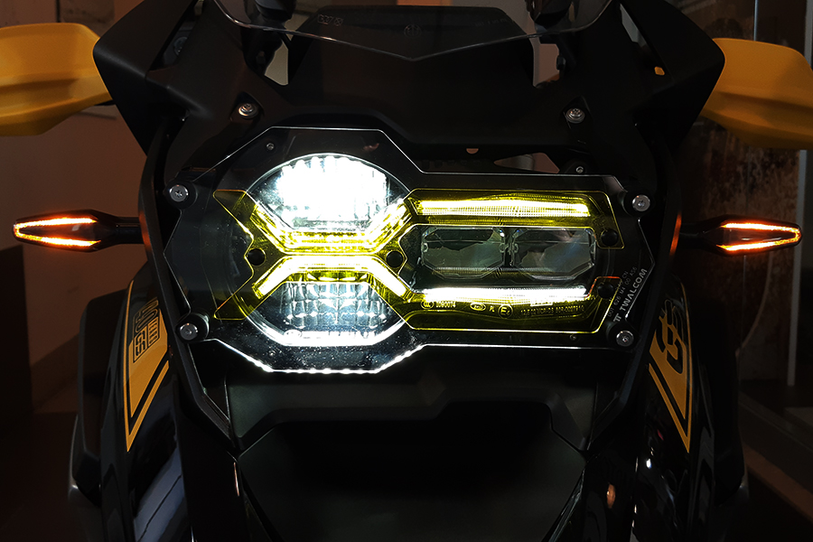 Designed and produced by us, it consists of two pieces that allow for easy installation and cleaning of the main headlight. Removing the protector does not require screws and/or tools.Thanks to the quick pressure inserts, the front protector can be removed in 3 seconds.
