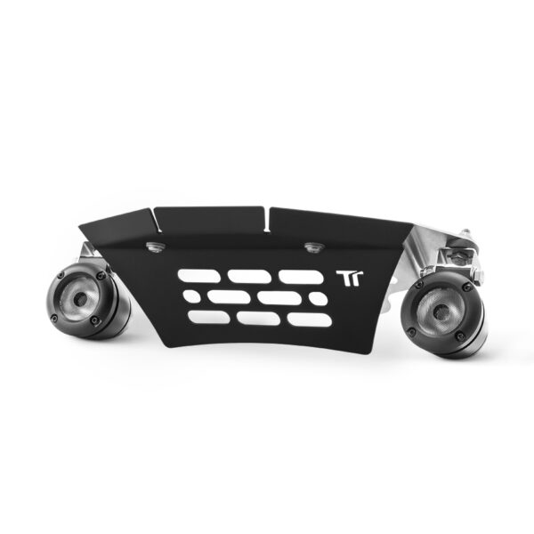 ECE50.50R.00.0070 certified LED lights – The package includes: 1 stainless steel mounting bracket, 2 Single LED High Performance Super Slim lights (900/1,100 lm. – 10w. – DC10-30v.) 25° beam width, 2 mounting/adjustment brackets, air duct, dedicated “Made in Twalcom” wiring complete with relay, fuse protection, switch, switch bracket, connectors and electrical installation hardware and mounting instructions. Structure: die-cast aluminum IP 68. LED light dimensions: 50 x 63 x 57 mm. LED light weight: 200 g each. Total weight: 900 g.