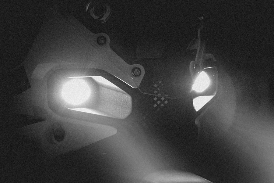 Upgrade your Kove 450 Rally with our LED Racing Light Kit, designed to remove the original headlights and control unit (1.5 kg), allowing weight savings of up to 1.1 kg. This improves front-end responsiveness and offers exceptional visibility with 2,800 lumens.