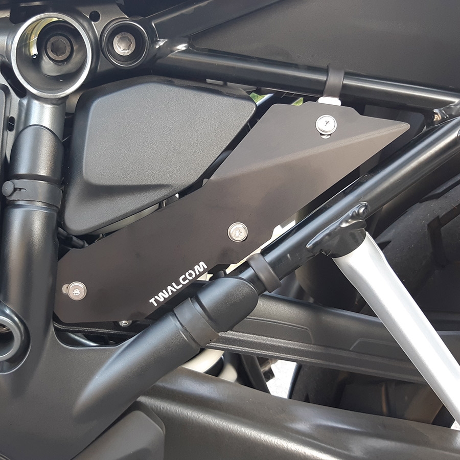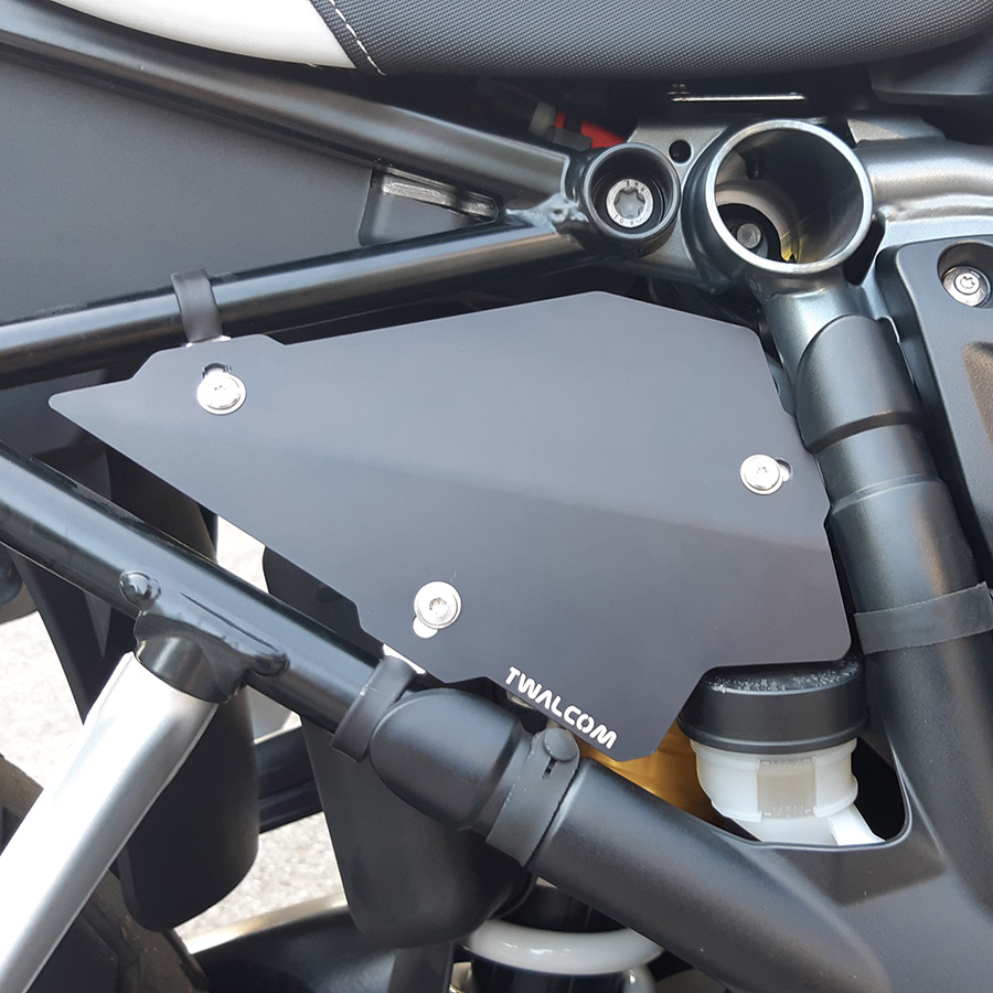 For Rally and HP versions (with black nylon frame protectors). The Side Panel Set is part of a product family designed to reduce the heat perceived while riding the motorcycle.
