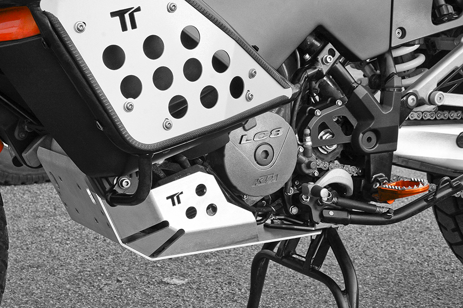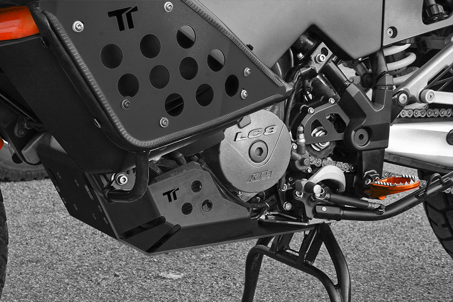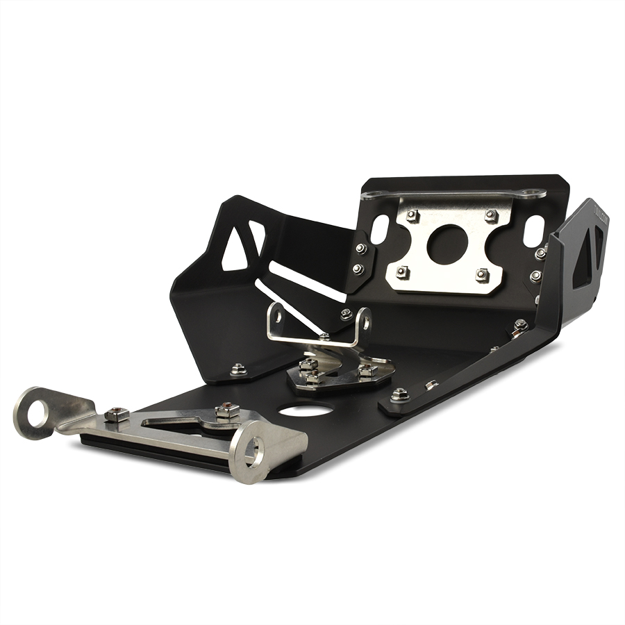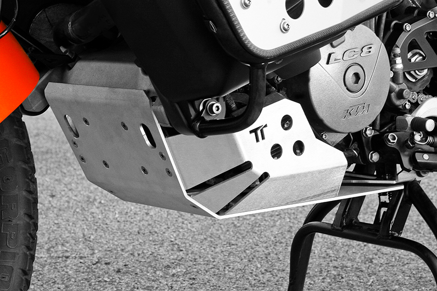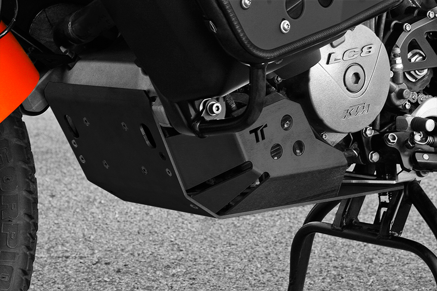 This extremely robust skid plate is specifically designed to tackle any type of terrain: off-road, raids, rallies, and gives the 950/990ADV. a particularly Racing look. It has been designed and produced by us to offer exceptional protection against frontal impacts, allowing complete protection of the engine block, right and left crankcases, and collectors. The Motorally skid plate also features an additional extension for total protection of the clutch cover.