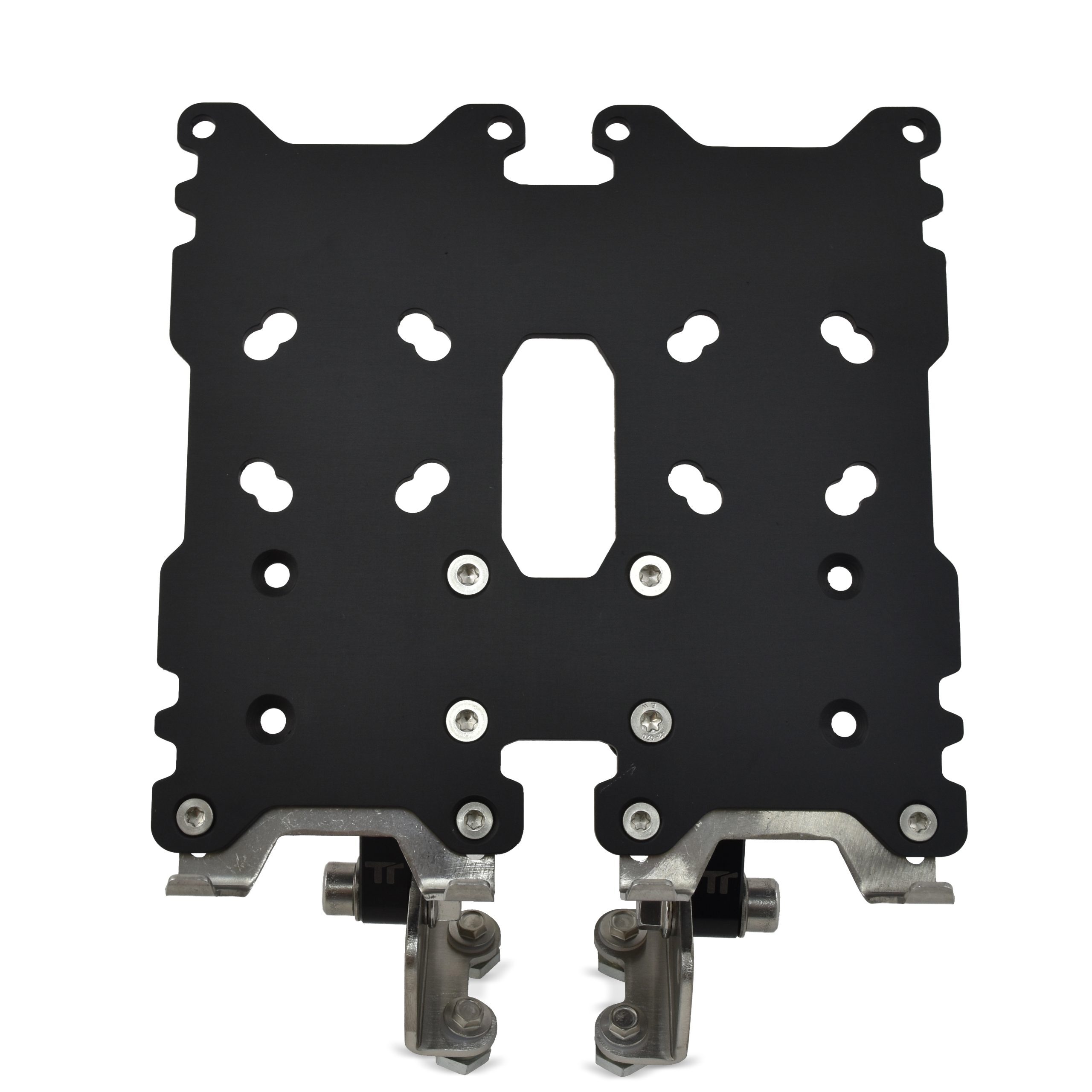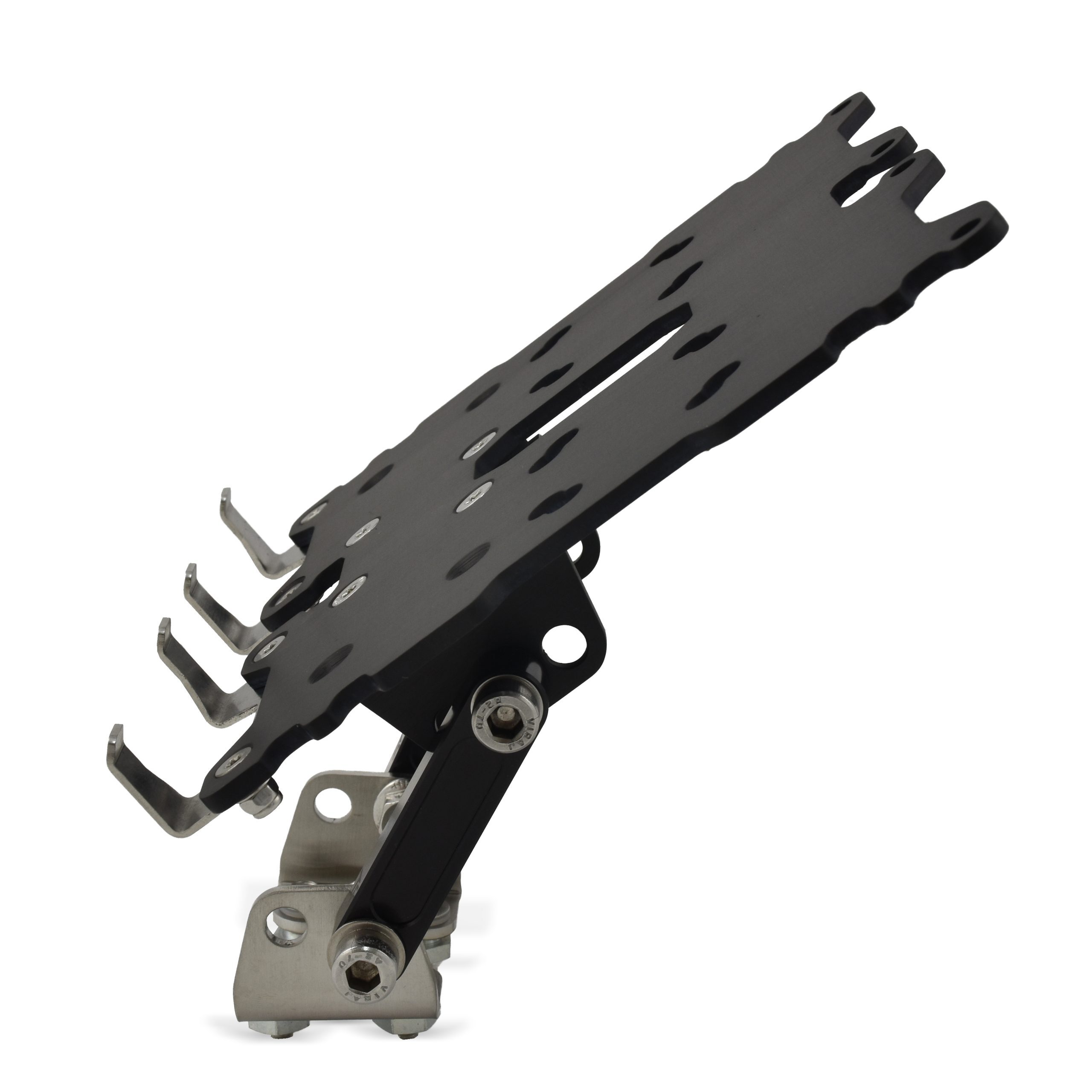 Mounting base for 2 Rugged Phones designed and manufactured by us, specifically created to position two Rugged Phones vertically and allow a wide range of adjustments. The particular construction provides considerable freedom of positioning: you can mount the double bracket both internally and externally to the risers, with three additional base positions.