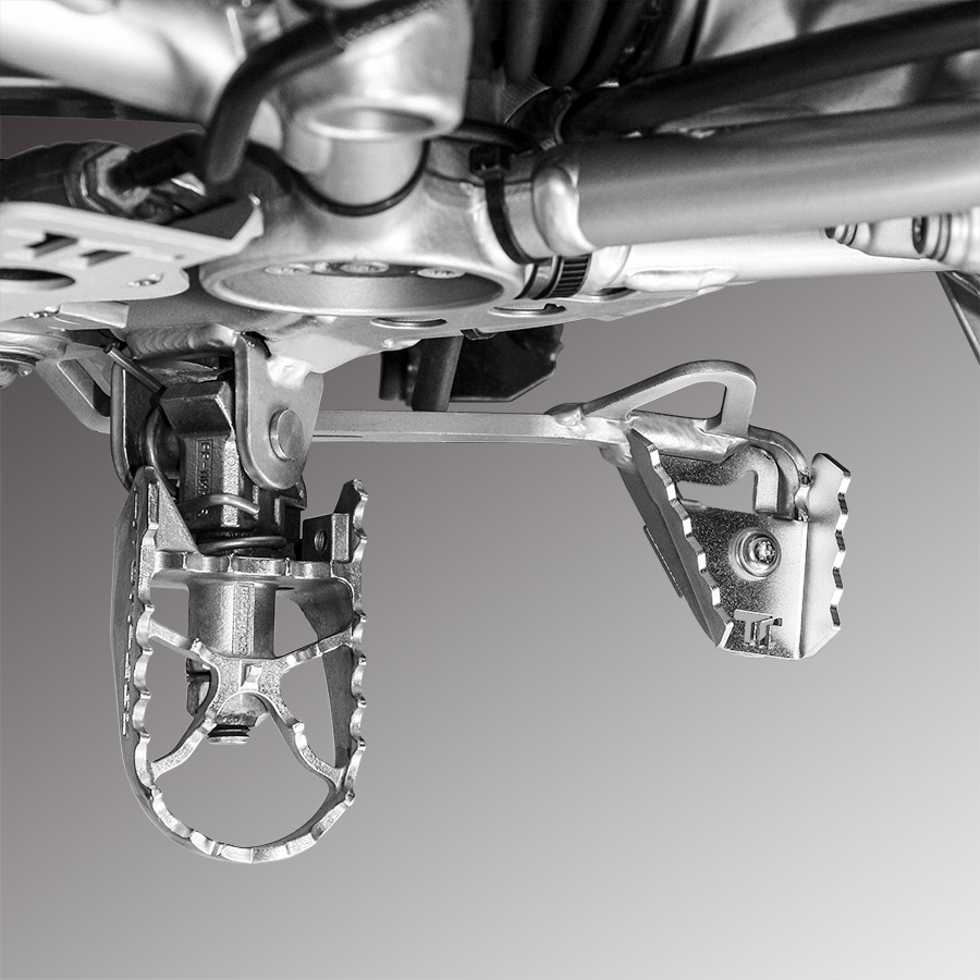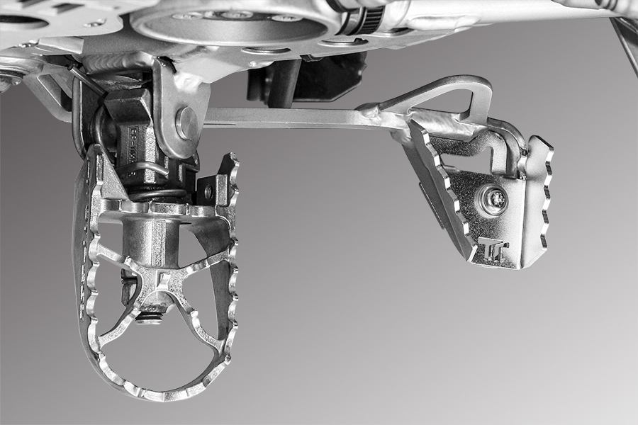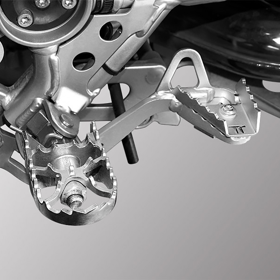 How many times have you struggled to find the right contact with the rear brake lever while riding off-road, on trails where standing up is necessary? Our rear brake lever extension not only widens the boot’s contact point but also raises the contact point by over a centimeter. Raising the contact point allows for more intuitive and quicker braking. This means greater safety while riding.