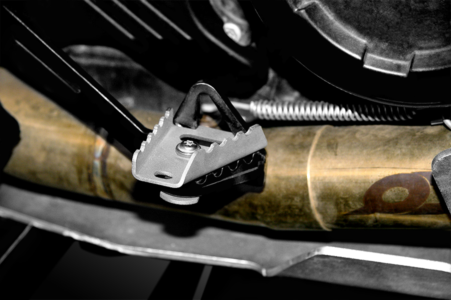 How many times have you struggled to find the right contact with the rear brake lever while riding off-road, on trails where standing up is necessary? Our rear brake lever extension not only widens the boot’s contact point but also raises the contact point by over a centimeter. Raising the contact point allows for more intuitive and quicker braking. This means greater safety while riding.