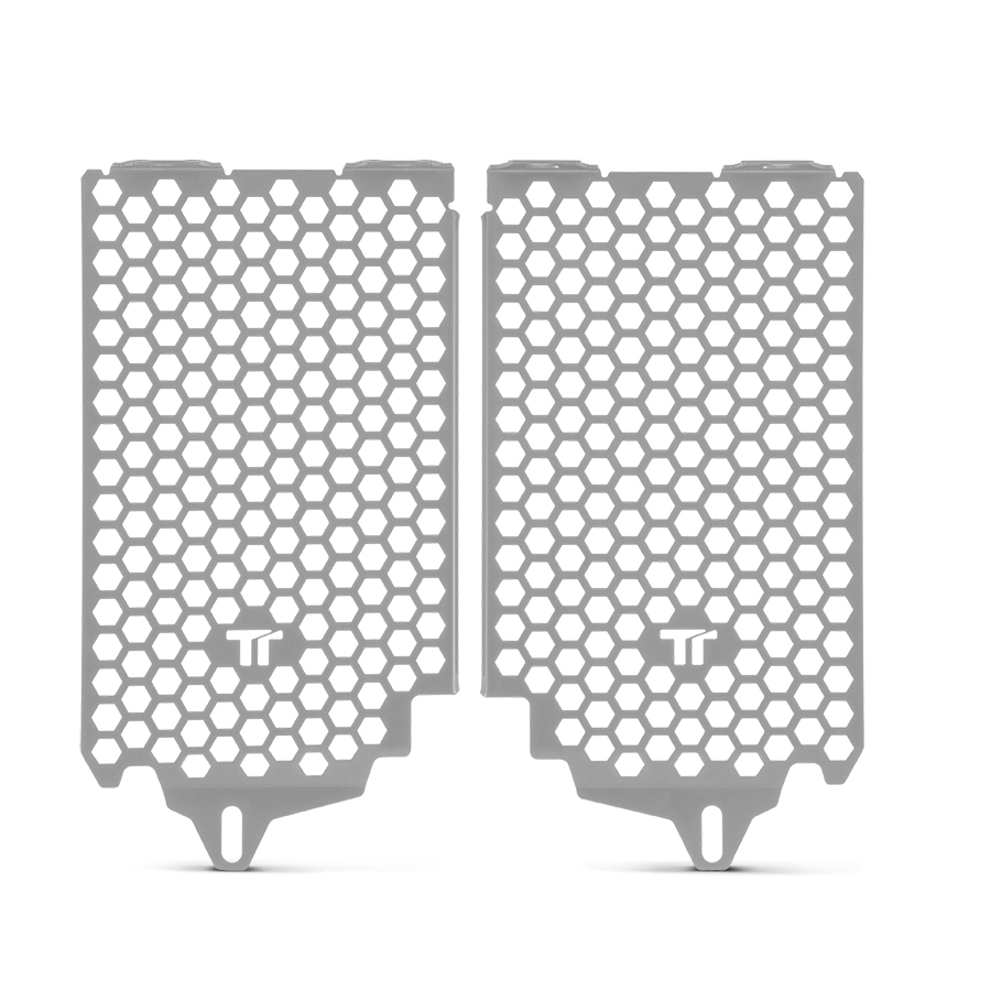 The radiator protection set we designed is manufactured with top-quality materials. It provides adequate protection for air radiators from stones and large insects and is essential for trips involving long stretches on dirt roads and off-road riding. The unique feature of our protection is the possibility of extremely simple and quick cleaning. You can remove and reinstall the protection grille in just a few minutes. A real convenience! The protections integrate perfectly with the bike’s design, giving it an aggressive look.
