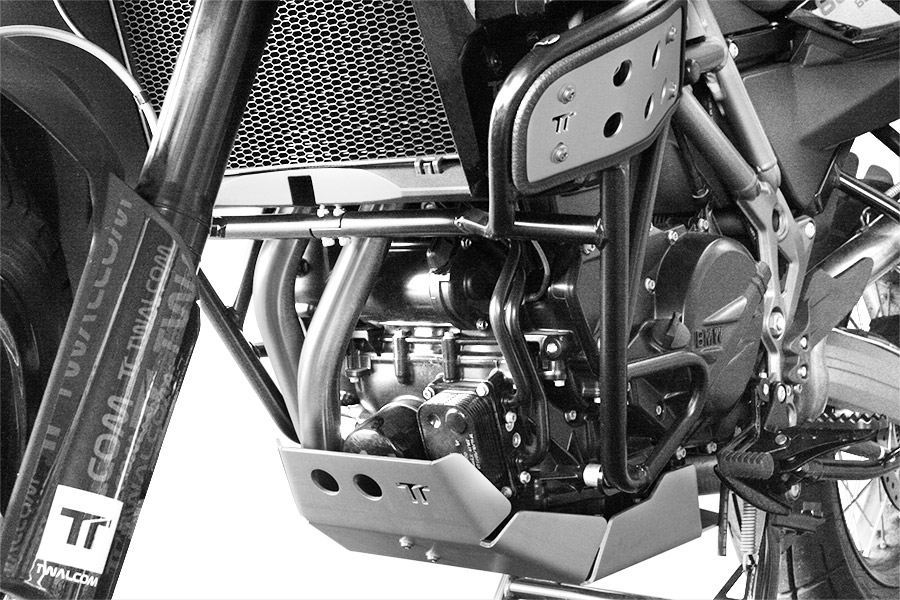 The new Raid engine guard plate for F800GS M.Y. 2008/13 is perfectly compatible with the Raid tubular side protections. The new engine guard plate combined with the tubular side protections offers the F800GS total protection.
