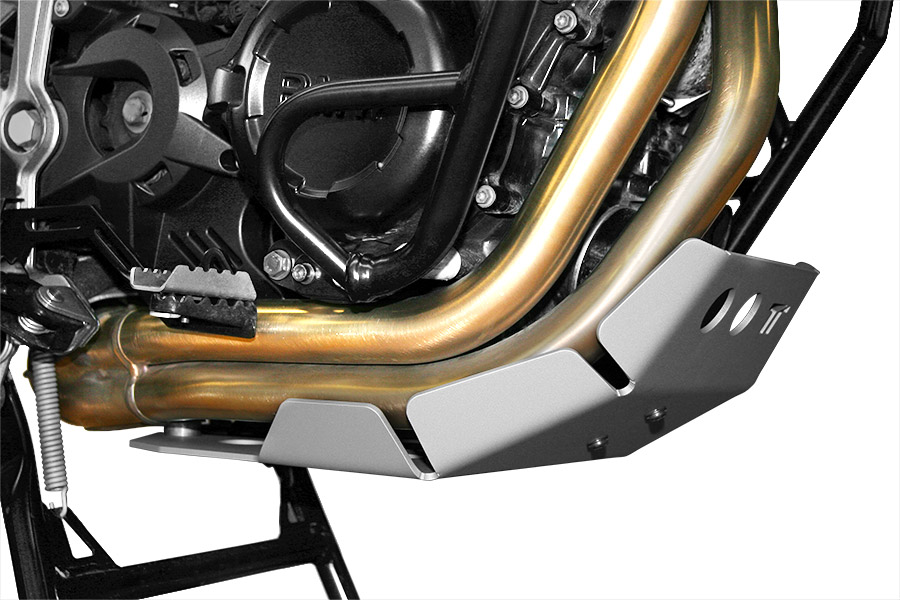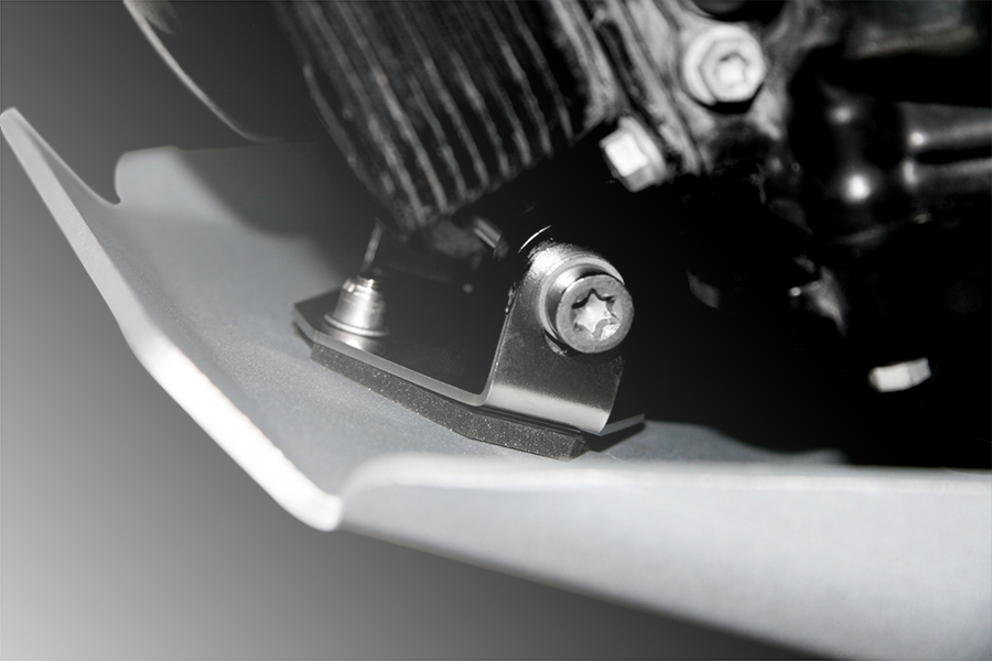 This extremely robust engine guard plate that we produce, in addition to being built with top-quality materials, provides complete protection for the engine block, manifolds, and catalytic converter of the exhaust. It gives the F800GS a particularly aggressive and sporty appearance. It comes complete with anti-vibration elastic mounts and stainless steel bolts with self-locking coating.