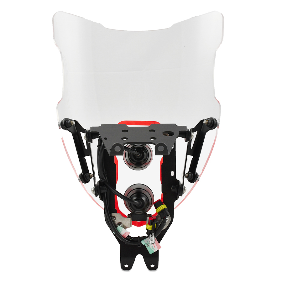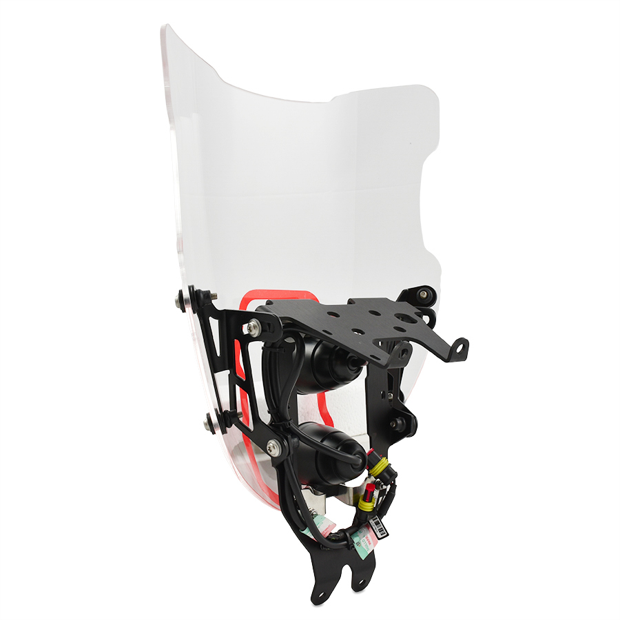 The Rally Kit E-Light 1, equipped with an adjustable windscreen and two LED headlights, is specifically designed and manufactured to provide greater aerodynamic protection, a wider field of vision, and increased safety in all low-visibility situations. Installation is simple and quick thanks to the dedicated wiring. You just need to disconnect the original connector of the standard mask and insert the new connector. The lights will be controlled directly by the standard light switch. No special tools or skilled labor are required. Everything can be installed in less than 40/45 minutes.