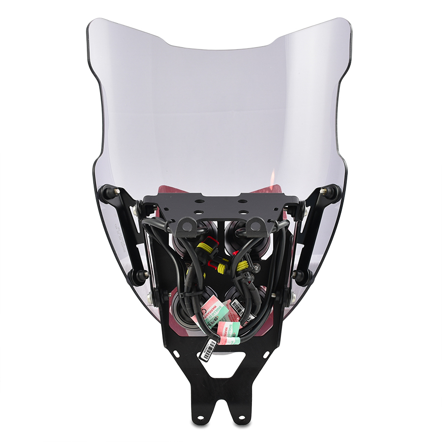 The Rally Kit E-Light 4, equipped with an adjustable windscreen and four LED lights, is specifically designed and manufactured to provide enhanced aerodynamic protection, wider field of vision, and greater safety in all low-visibility conditions. Installation is quick and easy thanks to the dedicated wiring harness. You simply need to disconnect the original connector from the standard headlight mask and insert the new connector. The lighting will be controlled directly by the standard light switch. No special tools or expertise required. Everything can be installed in less than 40/45 minutes.