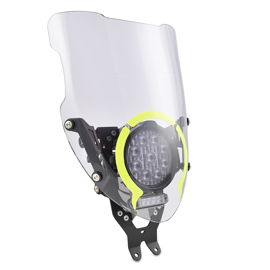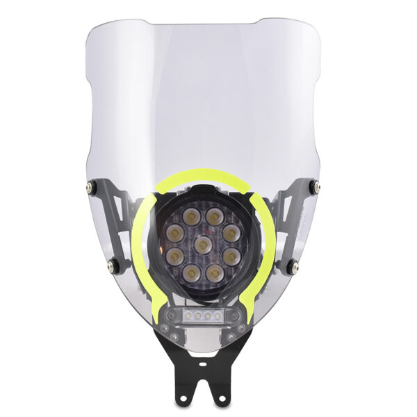 The Rally Kit E-Light Force, equipped with a windscreen with adjustable inclination and a 9 LED headlight NOT approved RACE USE ONLY, is specifically designed and manufactured to provide greater aerodynamic protection, wider field of vision and enhanced safety in all low visibility situations. Installation is simple and quick thanks to the dedicated wiring. Simply disconnect the original connector from the stock fairing and insert the new connector. The lighting will be controlled directly by the stock light switch. No special equipment and/or specialized labor required. Everything can be installed in less than 40/45 minutes.