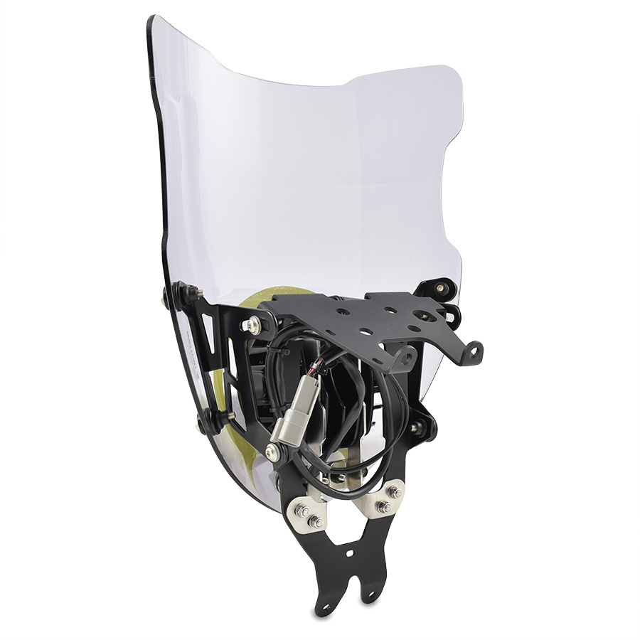 Available with black anodized frame and Transparent or Light Smoke Windscreen.