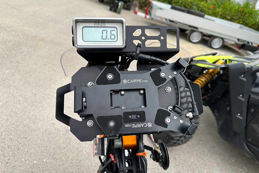 In addition to this, the lower base is also prepared for fixing an additional support for mounting an extra antenna + 1 ICO/RNS Trip Computer or 2 ICO/RNS Trip Computers, allowing the use of the electronic Roadbook together with the certainty of the magnetic wheel sensor.