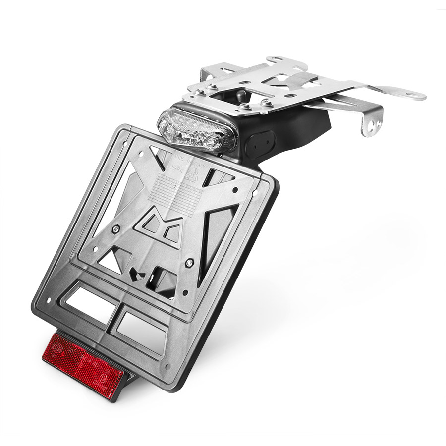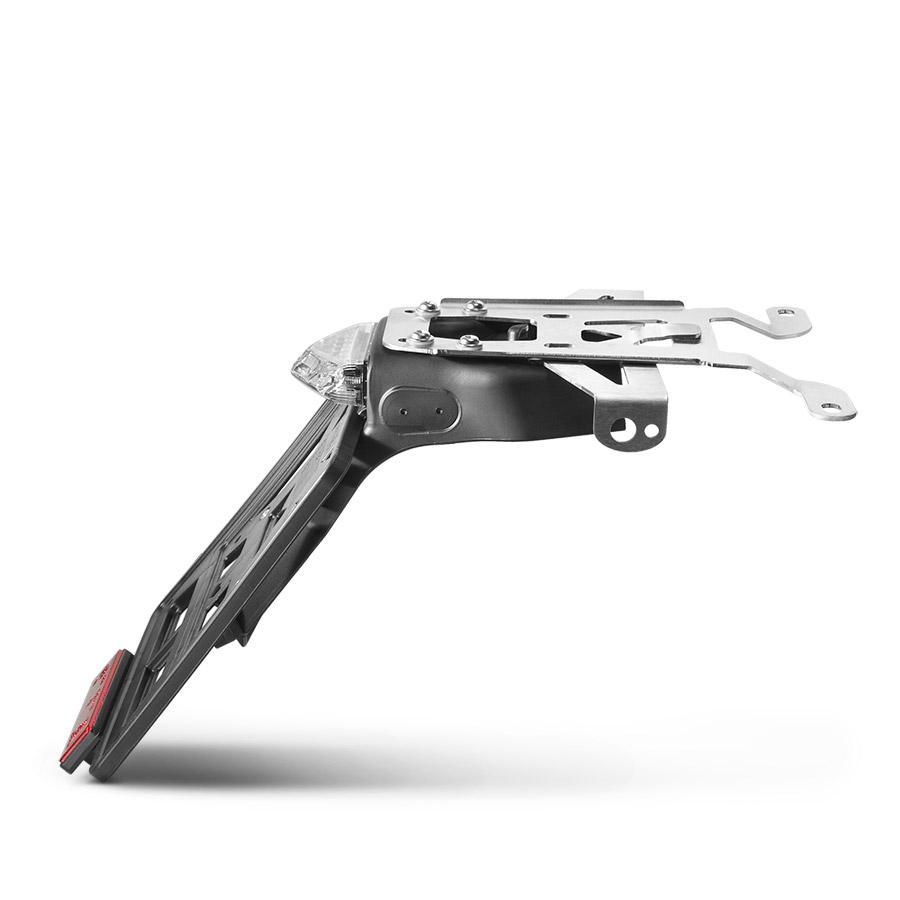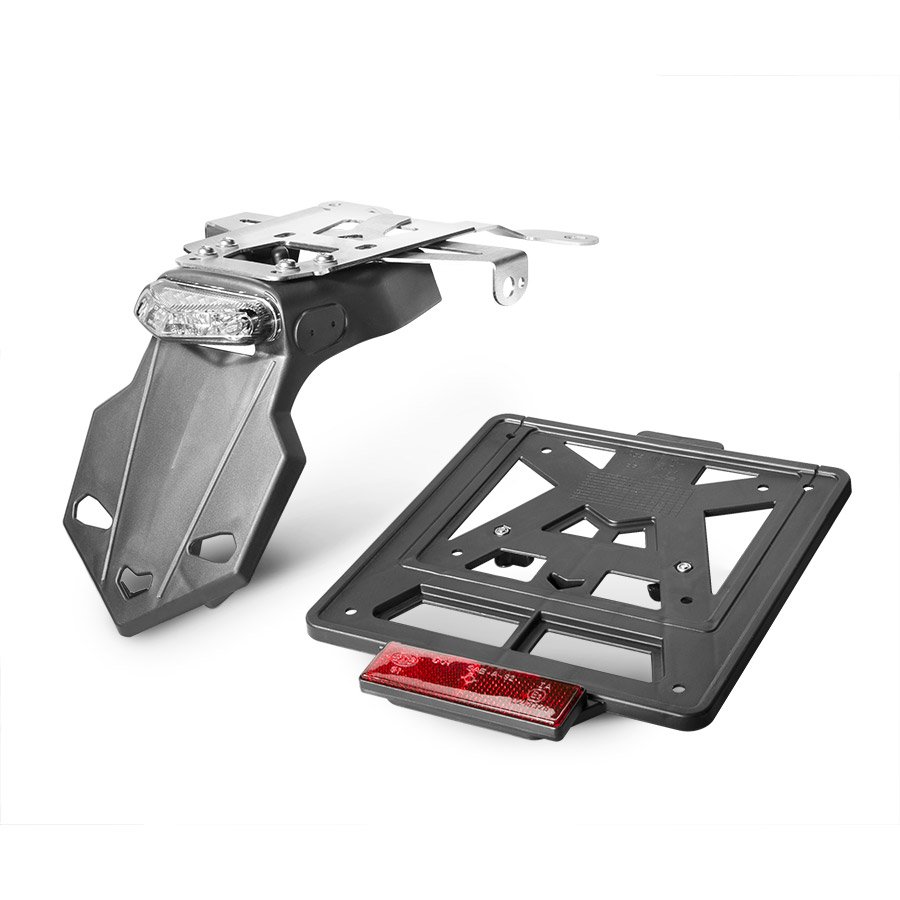 The kit includes: steel frame coated with epoxy-acrylic resins with turn signal support, rear fender with LED light (approved), license plate holder with approved reflector (removable) and pre-formed rubber. The kit also includes stainless steel screws and nuts with self-locking coating and clear instructions in Italian with photos.