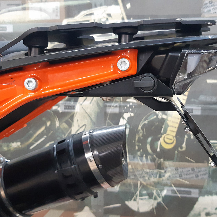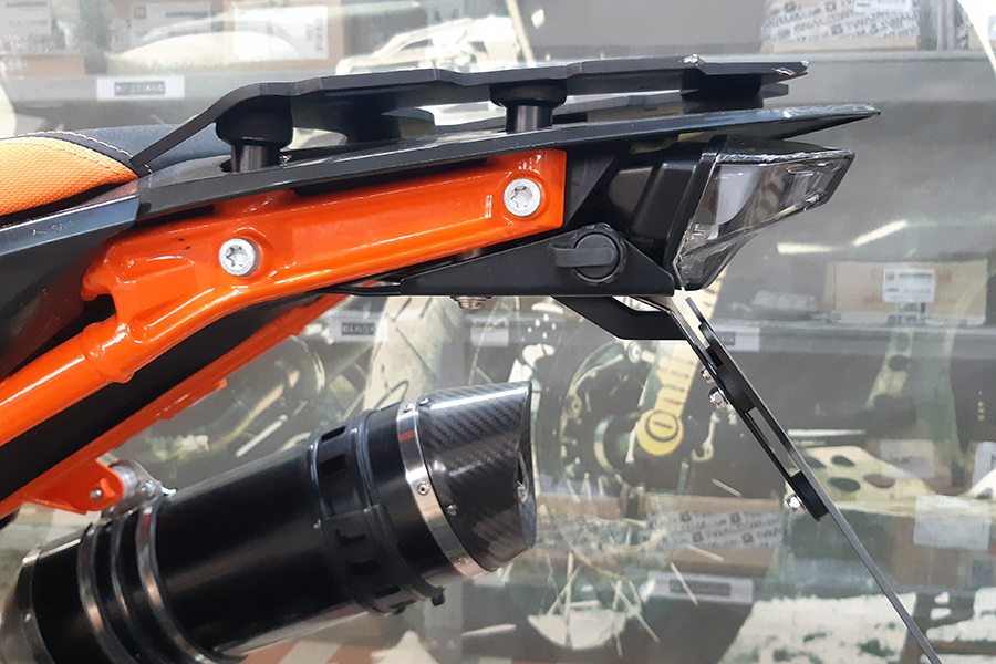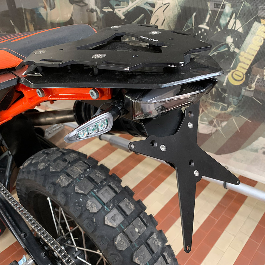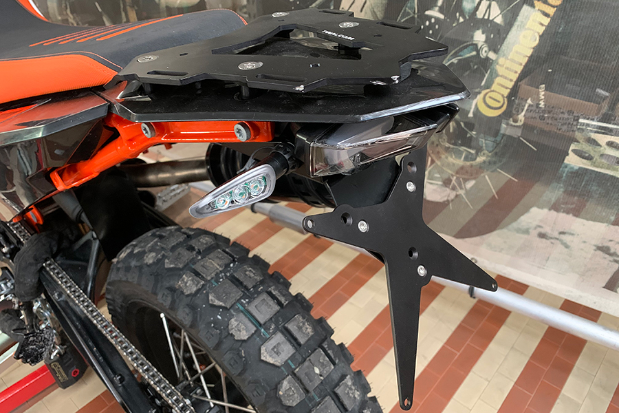 With our kit you can replace the stock rear fender/license plate holder with an extremely lighter, sleeker structure with a decidedly Racing look. The particular design helps significantly reduce the exposure of turn signals that are particularly vulnerable during Offroad riding.