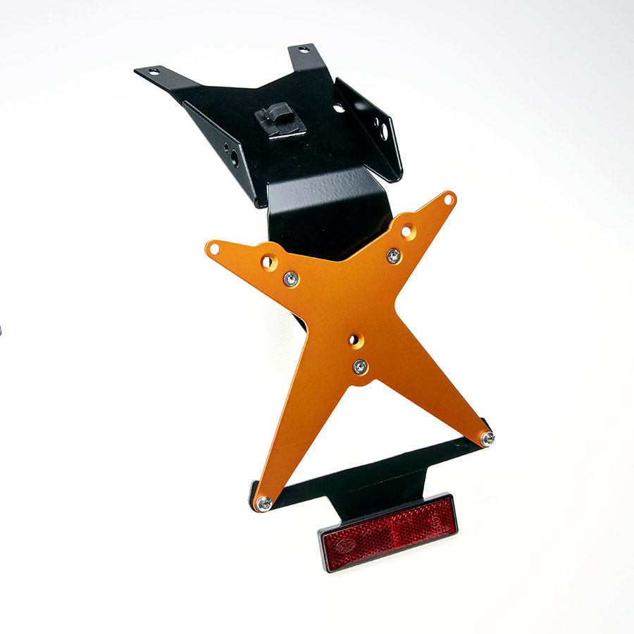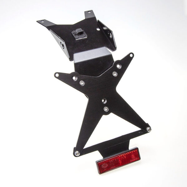 The kit consists of rear fender, license plate support with 30° inclination (approved) and approved reflector (removable).