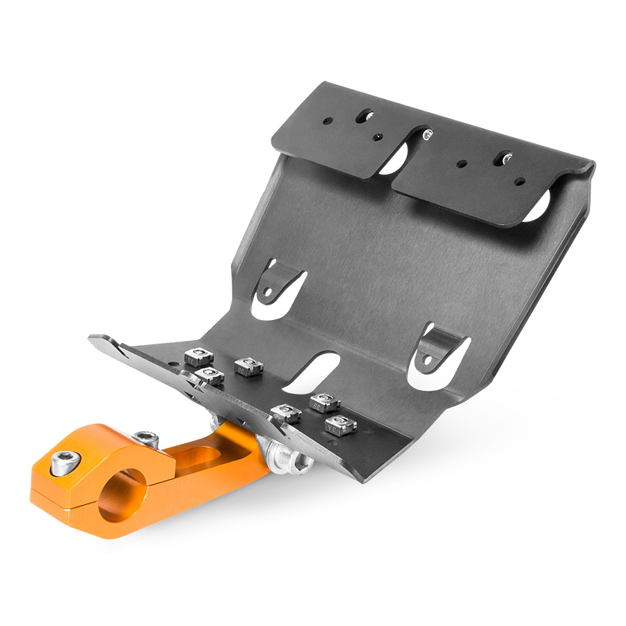 This support slide of ours is dedicated to MD and MigTec Roadbooks. It is made of high-strength 3 mm thick Peralluman and has been specifically designed to minimize weight while ensuring the best possible mounting ergonomics, making adjustment and fastening simple and very quick. It is prepared for mounting on anti-vibration mounts (included) for MD and MigTec Roadbooks, two ICO or RNS Trip Computers, and for two other structures for antennas, instruments, indicators, and switches.