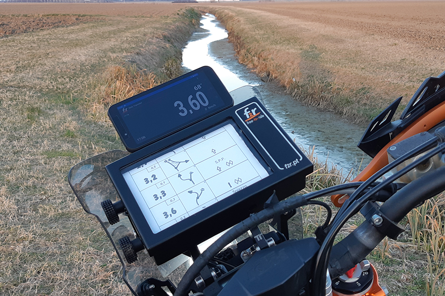 Our new support slider ADVENTURE is made of high-strength 4mm thick Peralluman. It has been specially designed to minimize weight while focusing on the best possible mounting ergonomics, making adjustment and fixing simple and very quick. It is designed for anti-vibration mounting of F2R 730, 750 and 850Rally Roadbooks in combination with a Rugged Phone from 5″ to 6.3″ (with double high-strength velcro and additional security rings).