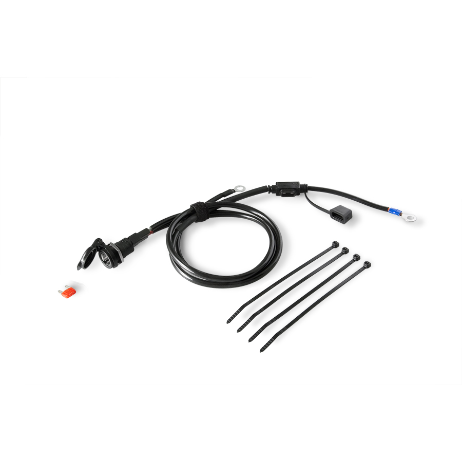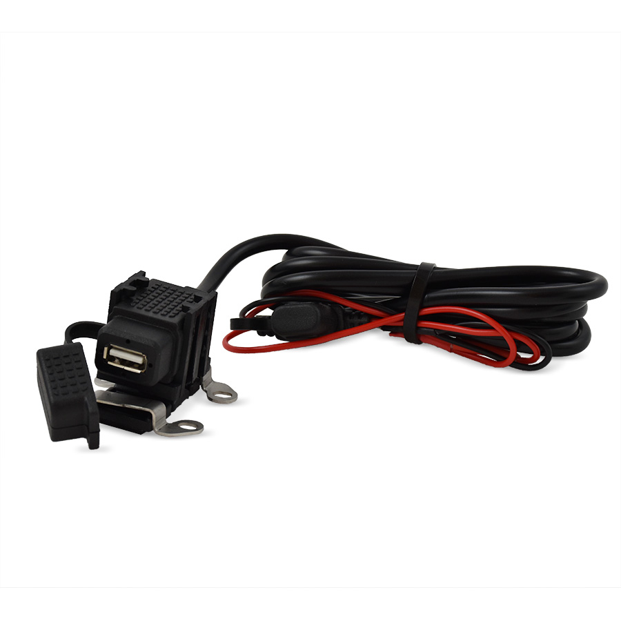 The package includes: waterproof USB socket, rotation element, stainless steel brackets, wiring with waterproof MINI Fuse port (2A) (length 195 mm).