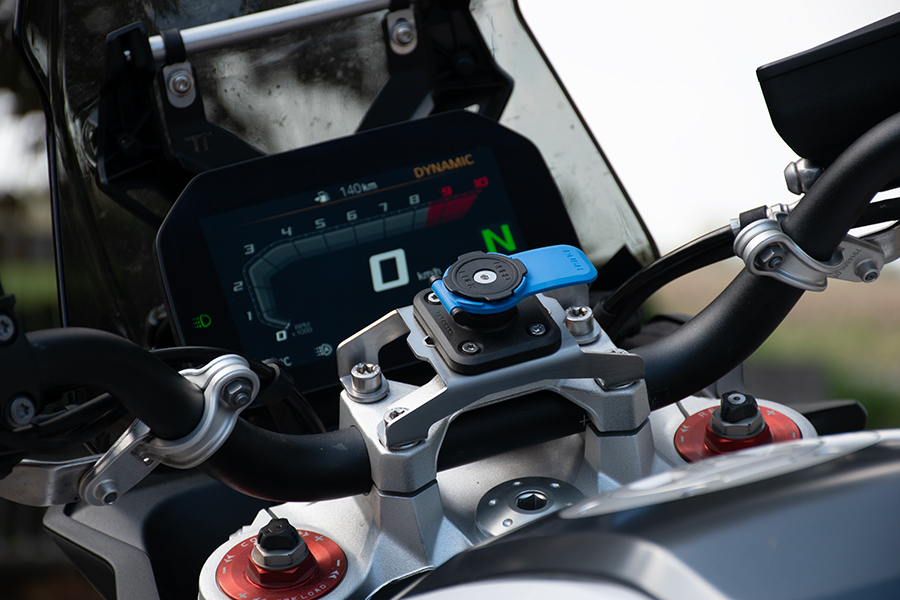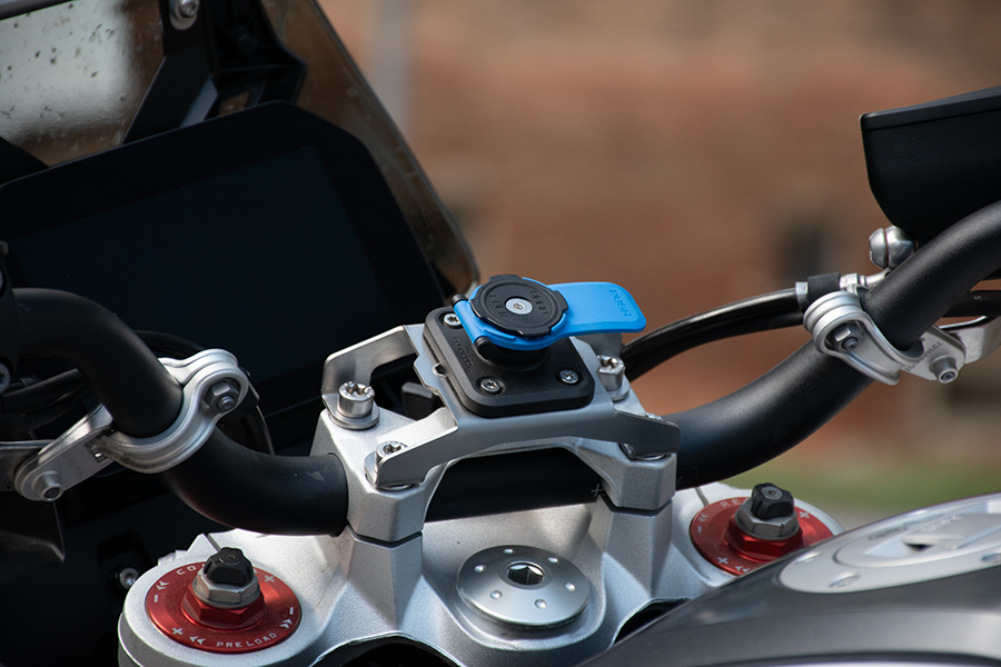 La base di supporto GPS/QuadLock è stata appositamente progettata per il montaggio diretto sui riser della F900GS nell’ottica di contenere al massimo i pesi ma soprattutto della migliore ergonomia di montaggio possibile. La particolare inclinazione del piano di appoggio consente la perfetta visione dello strumento che si andrà a montare.
