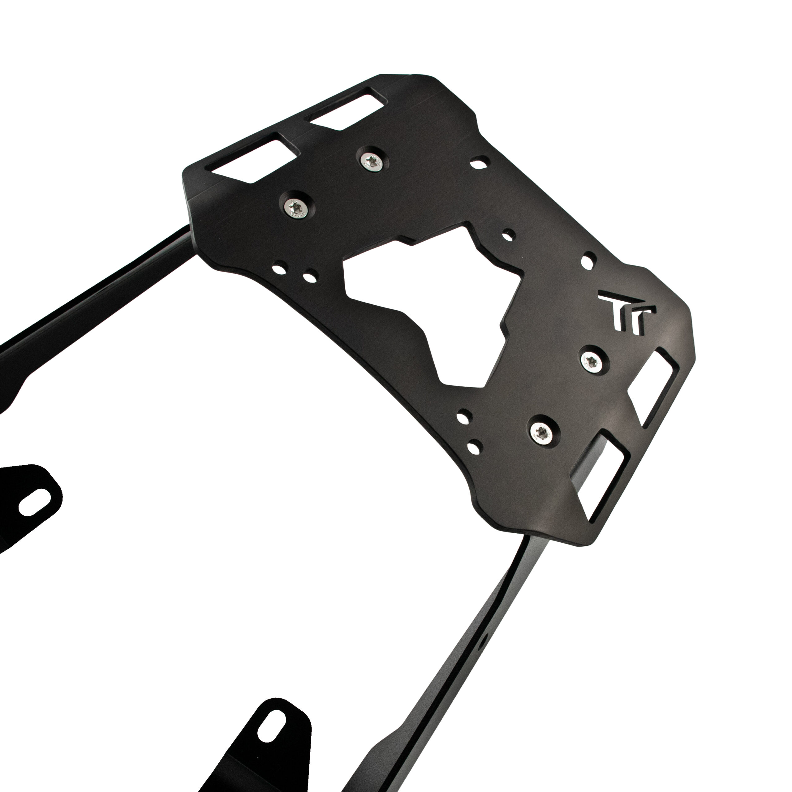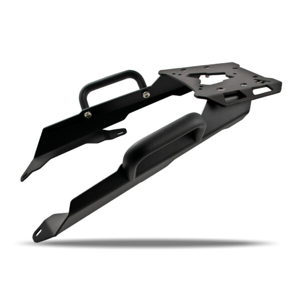Questa resistente piastra portapacchi, dotata di basi DX e SX ancorate direttamente al telaio, è stata progettata per ottimizzare la centralizzazione delle masse. Il risultato è una moto più stabile e agile, con una riduzione del trasferimento di carico durante frenate e accelerazioni. La particolare conformazione delle basi, particolarmente aderenti alle plastiche e al telaio, permette una distribuzione uniforme del peso.