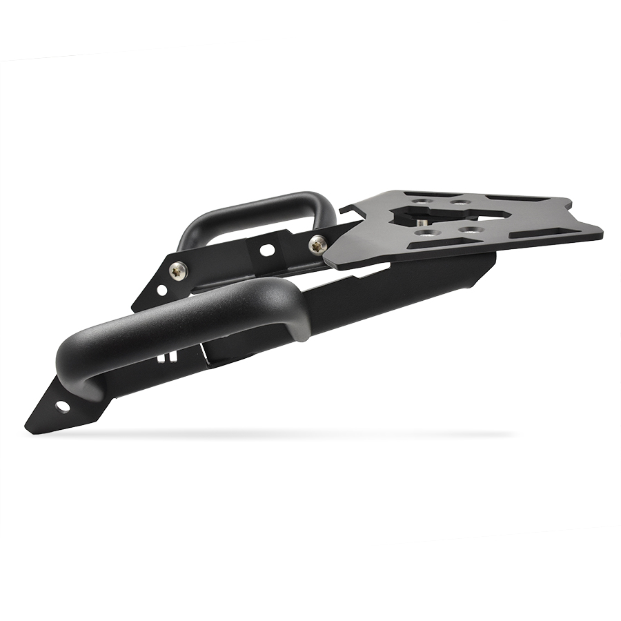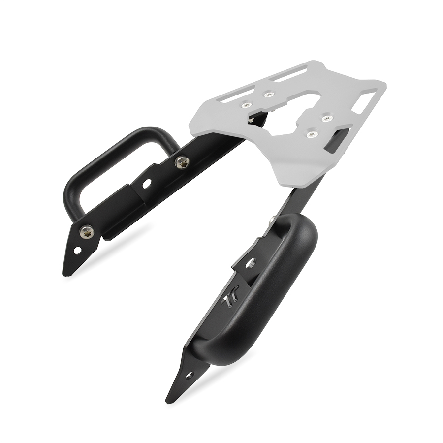 Questa robustissima piastra portapacchi, dotata di base DX+SX fissate direttamente al telaio della moto, è stata specificatamente progettata con l’obiettivo di centralizzare tutte le masse. Questo si traduce in maggiore stabilità e agilità della moto e meno trasferimento di carico in frenata e accelerazione. La struttura include anche due solide e robuste maniglie ergonomiche che si rivelano estremamente utili nello spostamento da fermo della moto. Il sistema Base + Piastra Portapacchi SPORT può essere montato su tutte le configurazioni della R1300GS, incluse quelle con radar e conferisce alla nuova R1300GS un particolare aspetto grintoso e sportivo.
