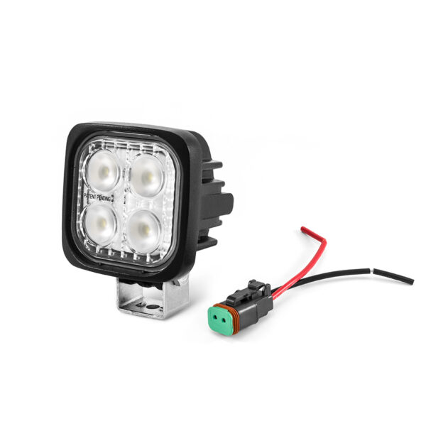 La confezione include: faro 4 LED (con omologazione in corso), Raw Lumens 2,115 – Effective Lumens 1.480 staffa di fissaggio/regolazione, presa maschio di connessione, istruzioni di montaggio e schema elettrico.