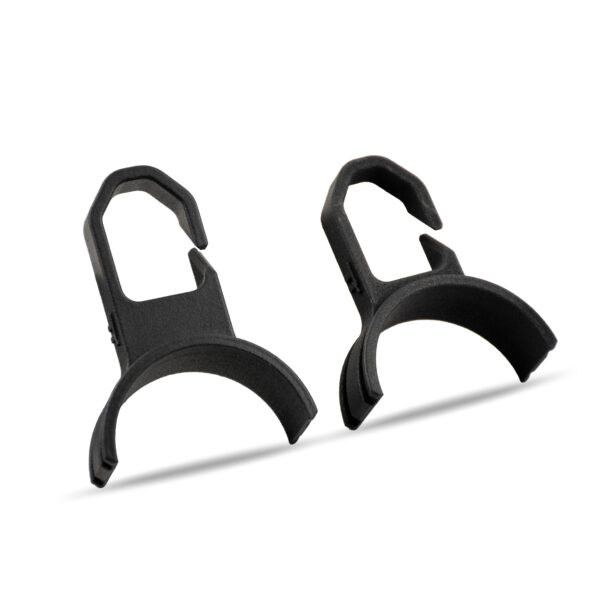 La guida in nylon stampato in tecnologia 3D è un accessorio utilissimo per direzionare il gruppo tubo freno/frusta sensore ICO ed evitare quindi ogni contatto nella sua corsa. Realizzato in nylon di colore nero, si fissa direttamente al fodero della forcella all’altezza desiderata con nastro biadesivo forte e fascette (in dotazione). Il particolare tipo di fissaggio consente anche di poterne mettere due a diverse altezze (vicine o lontane) per indirizzare al meglio la corsa del tubo/cablaggio.