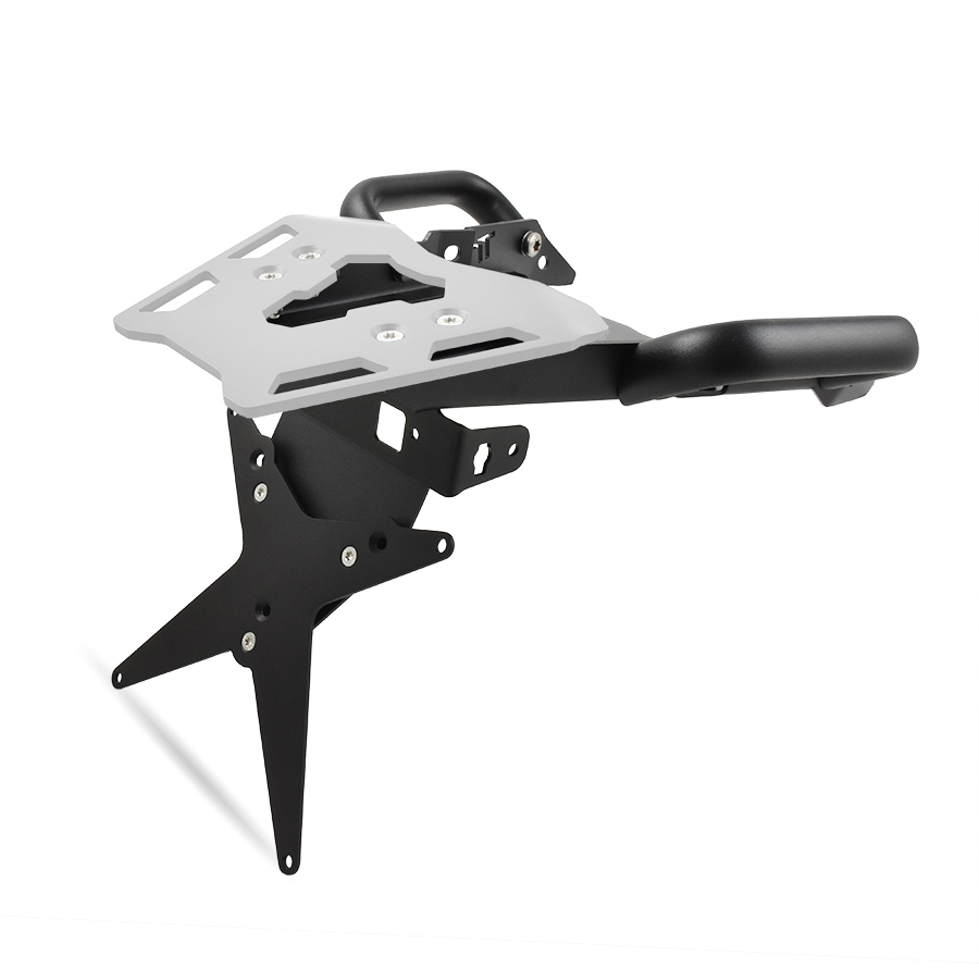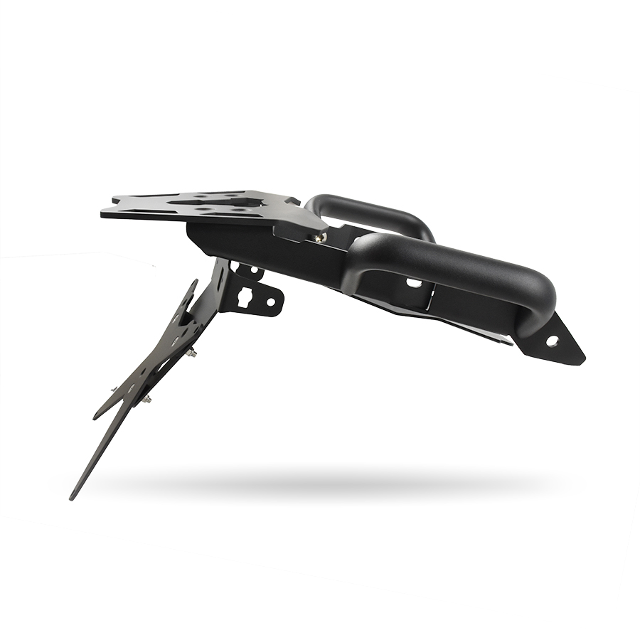 Con il nostro Kit completo è possibile sostituire il parafango/portatarga posteriore di serie con una struttura estremamente più compatta e dal look decisamente sportivo, in totale osservanza delle norme vigenti (inclinazione omologata 30°). Oltre a questo, il Kit include robustissima piastra portapacchi, dotata di base DX+SX fissate direttamente al telaio della moto, è stata specificatamente progettata con l’obiettivo di centralizzare tutte le masse. Questo si traduce in maggiore stabilità e agilità della moto e meno