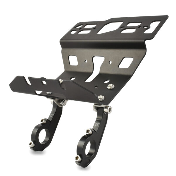 Il kit completo è composto dalla Slitta di supporto Roadbook PRO e da due staffe a lunghezza e larghezza variabile.
