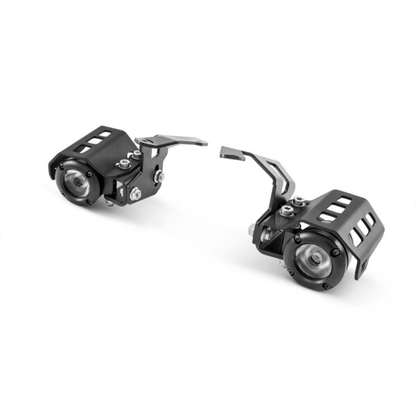 Questo kit è composto da due robustissime staffe di fissaggio specificatamente progettate per le KTM 1290 ADV S e R che fungono da supporto per il posizionamento dei Fari Led High Performance completi di protezioni in alluminio.