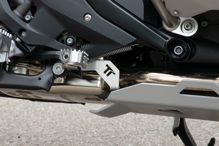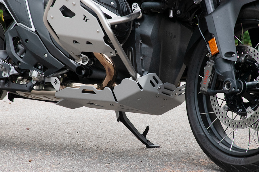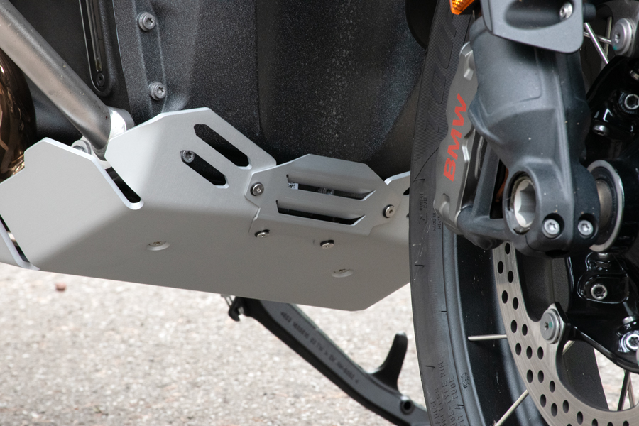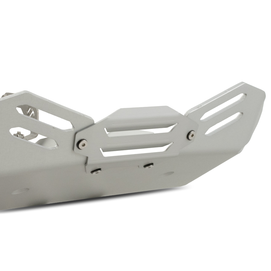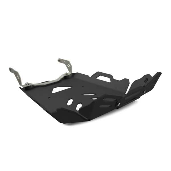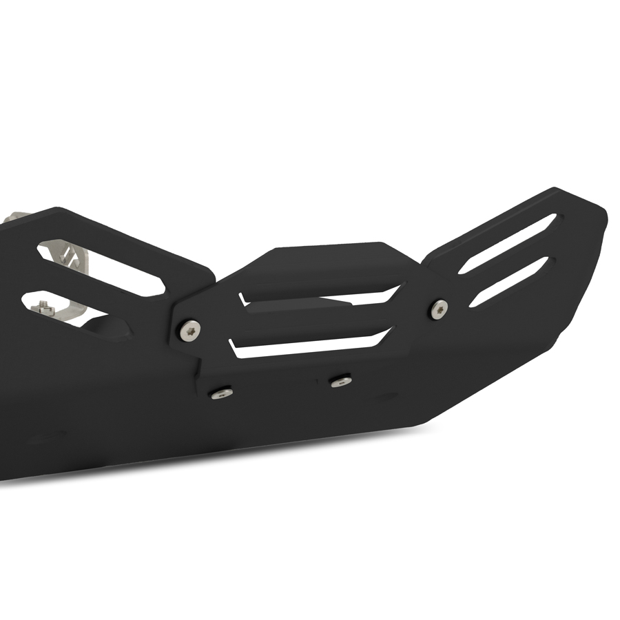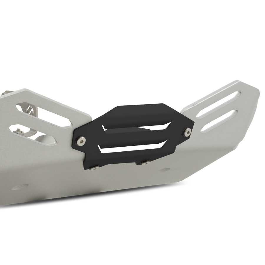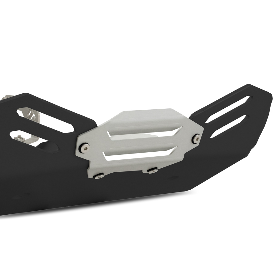 Questa robustissima piastra paramotore da noi progettata e prodotta oltre ad essere costruita con materiali di prima qualità, consente la completa protezione del blocco motore, del sensore del cavalletto laterale, dei collettori e della parte frontale del catalizzatore.