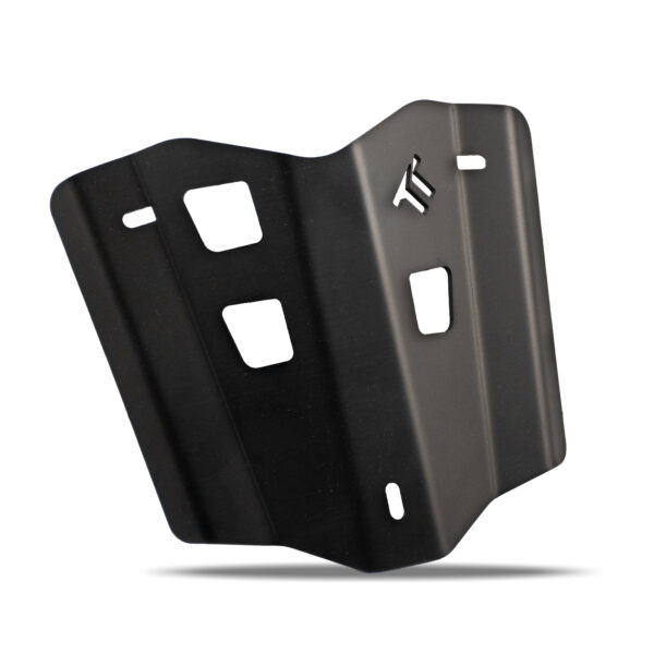 La protezione del coperchio distribuzione è costituita da una robusta protezione in alluminio nervato e da 3 distanziali con funzione antivibrante e di smorzamento degli impatti che protegge il coperchio originale in plastica nei punti più stressati dai possibili sassi che possono provenire dalla ruota anteriore.