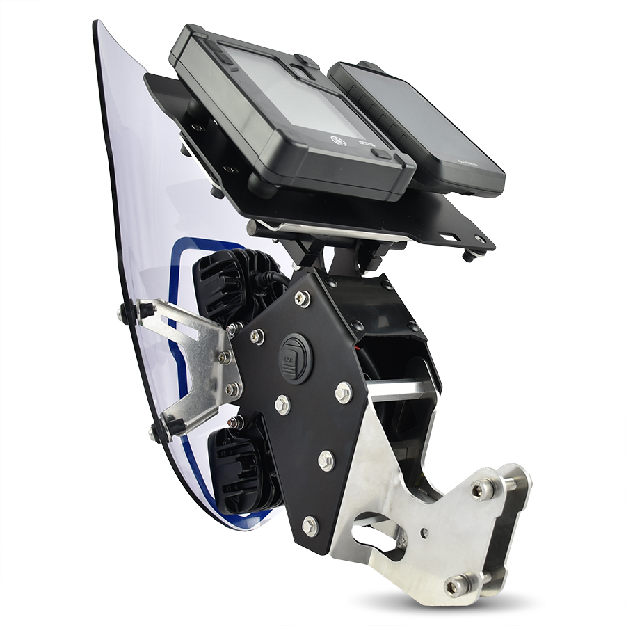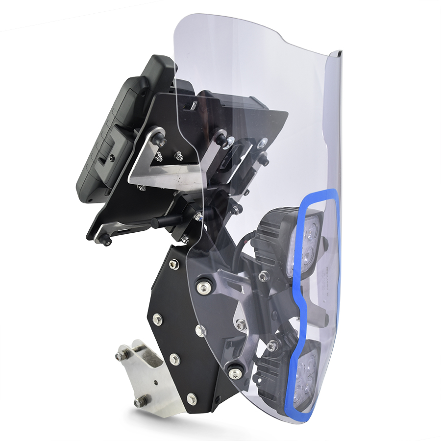 Con il nostro Rally Kit ADVENTURE PRO-Q dotato di windscreen con altezza mm. 400, due fanali a Led ad alta luminosità, presa 12V. a doppia USB e predisposizione per supporto GPS la vostra moto sarà pronta ad affrontare ogni tipo di viaggio e Raid. Avrete maggiore protezione aerodinamica, maggiore campo visivo, maggiore sicurezza in tutte le situazioni di scarsa visibilità. La slitta già in dotazione consente il montaggio oltre che dello strumento multifunzione OEM anche della base elettrificata per un GPS Garmin Montana 600, 700 e XT. In alternativa è possibile configurarla in versione RACING con slitta Roadbook (opzionale) e centralina F2R – PowerBox (opzionale) con esclusione dello strumento multifunzione OEM. Tutto è già predisposto.