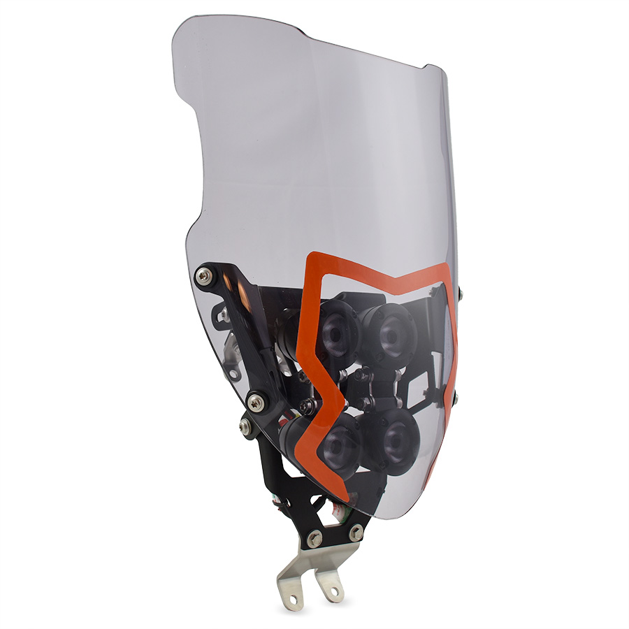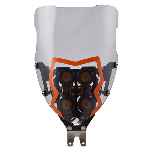 Con il nostro Rally Kit E-Light 4 dotato di windscreen con inclinazione regolabile e quattro fanali a Led espressamente da noi progettato e prodotto per le KTM 690 >2019 avrete maggiore protezione