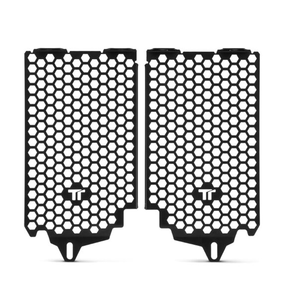 Il set di protezioni per radiatori da noi progettato è prodotto con materiali di primissima qualità. Offre l’adeguata protezione ai radiatori dell’aria da sassi e grossi insetti ed è indispensabile in occasione di viaggi dove siano previste lunghe percorrenze su sterrati e nella guida in off-road. La peculiarità della nostra protezione è la possibilità di una semplicissima e velocissima pulizia. E’ infatti possibile smontare e rimontare la griglia della protezione in pochi minuti. Una vera comodità! Le protezioni si integrano perfettamente con il design della moto conferendo un look aggressivo.