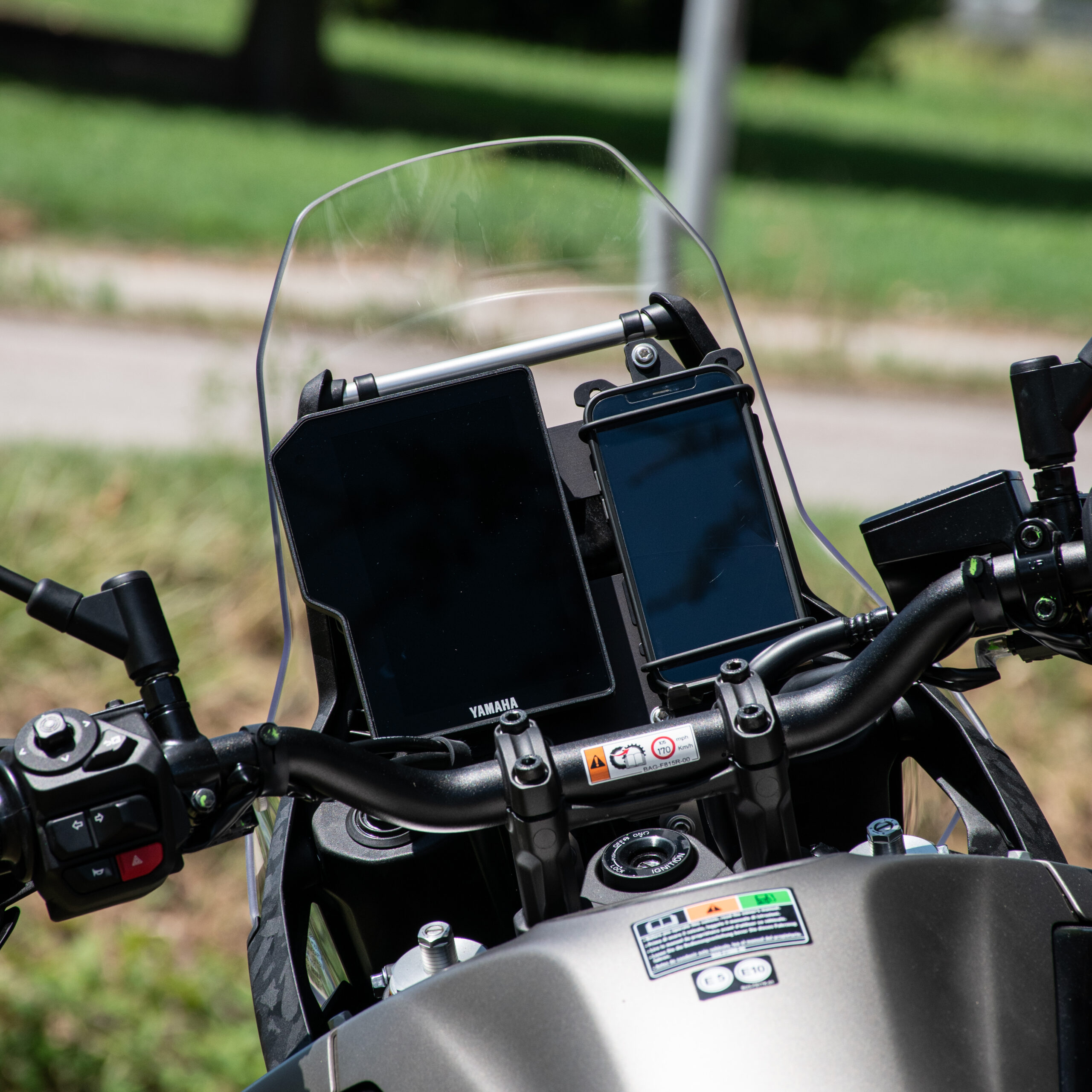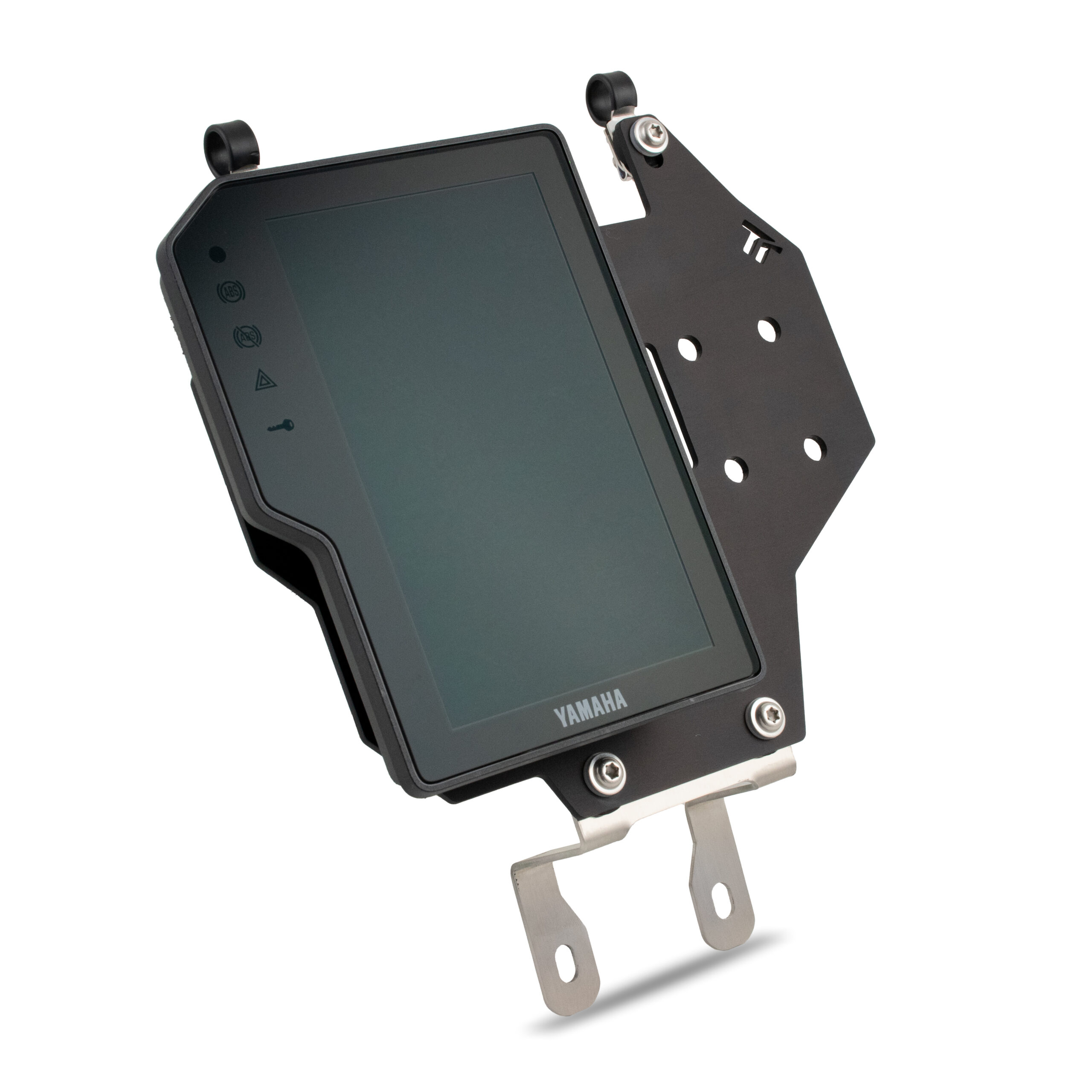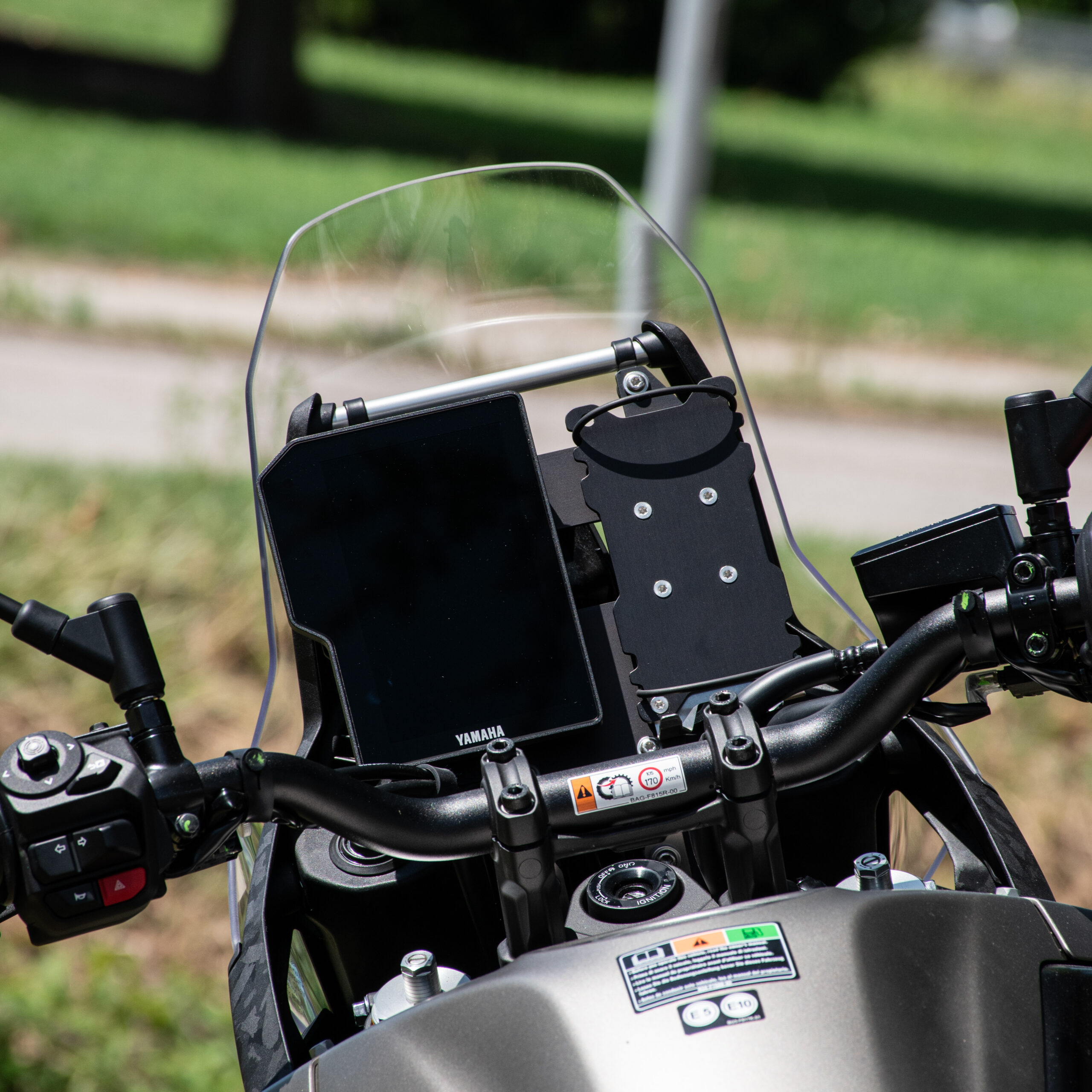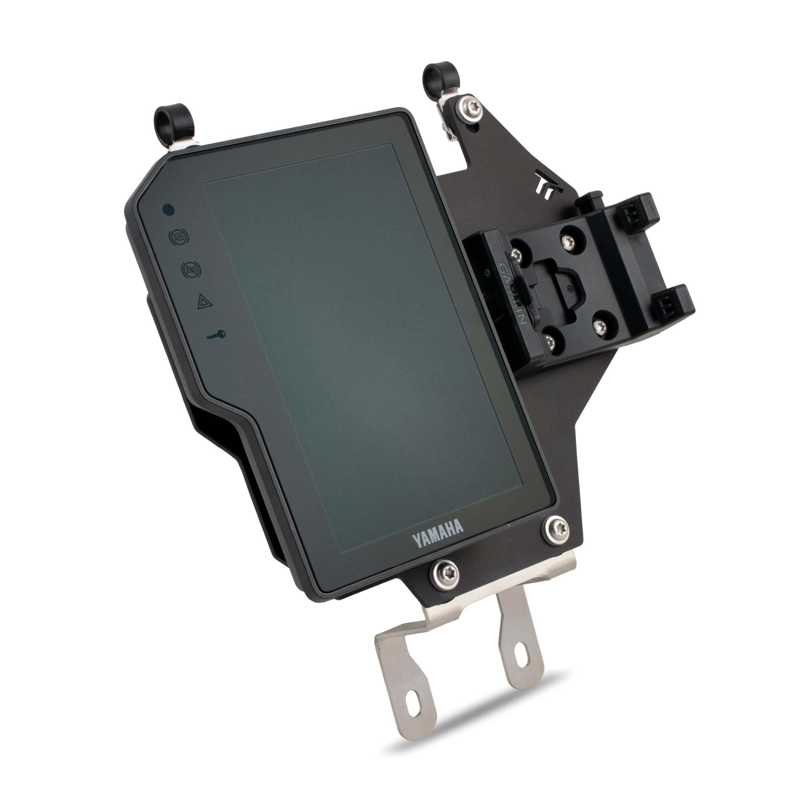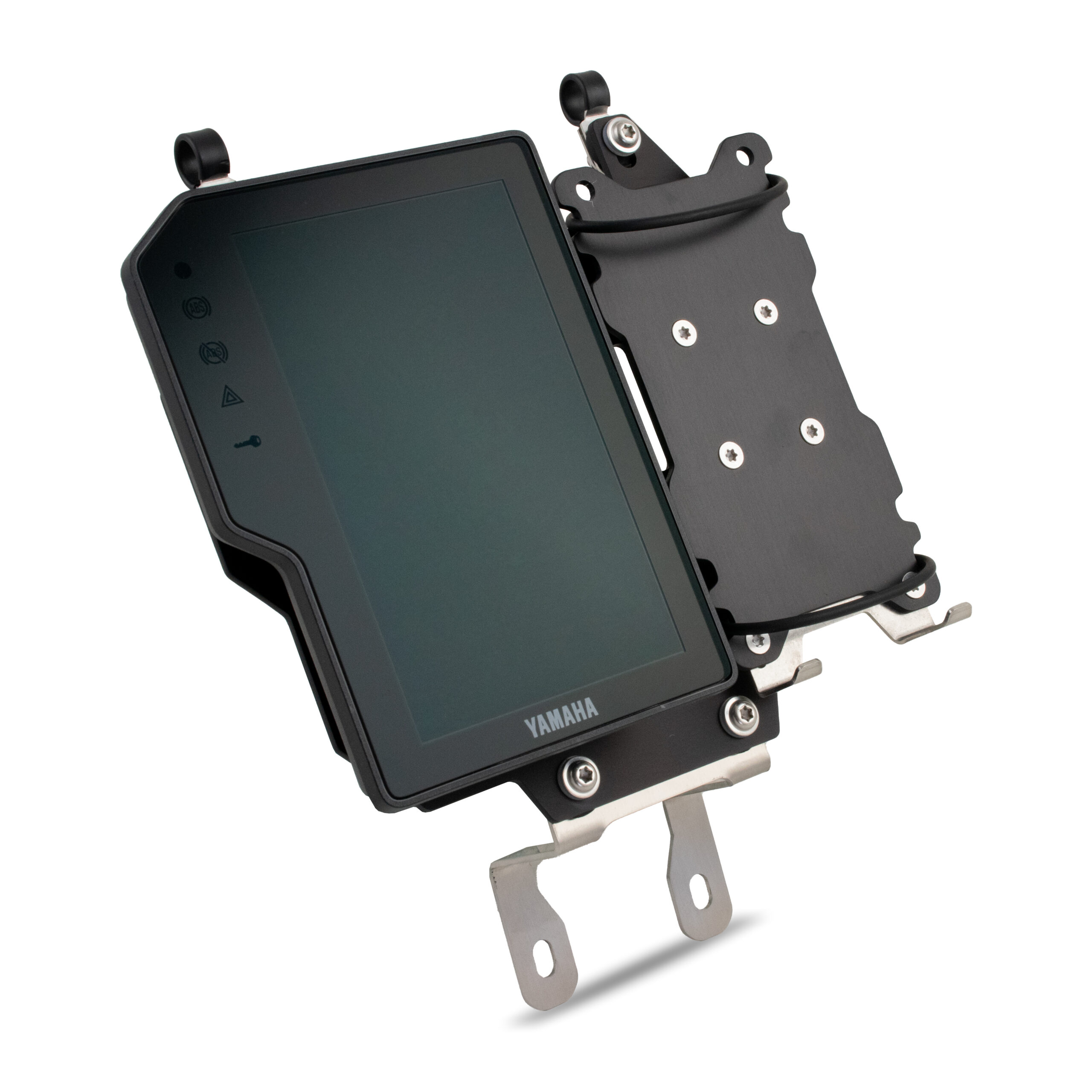 Il Supporto Display Multifunzione OEM + GPS per Yamaha Ténéré 700 2025/26 consente l’installazione affiancata dello strumento multifunzione originale Yamaha e della base elettrificata Garmin per dispositivi Montana Serie 600, 700 e XT (a visualizzazione verticale).