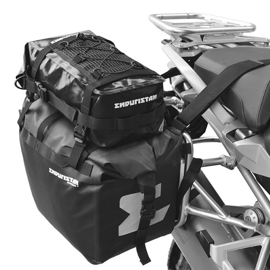 La Xs Base Pack è una borsa estremamente versatile: puoi aumentare il volume delle tue Borse Monsoon, della Tornado2, delle tue valige laterali rigide, usarla sulle barre paramotore e anche direttamente sulla piastra portapacchi posteriore.